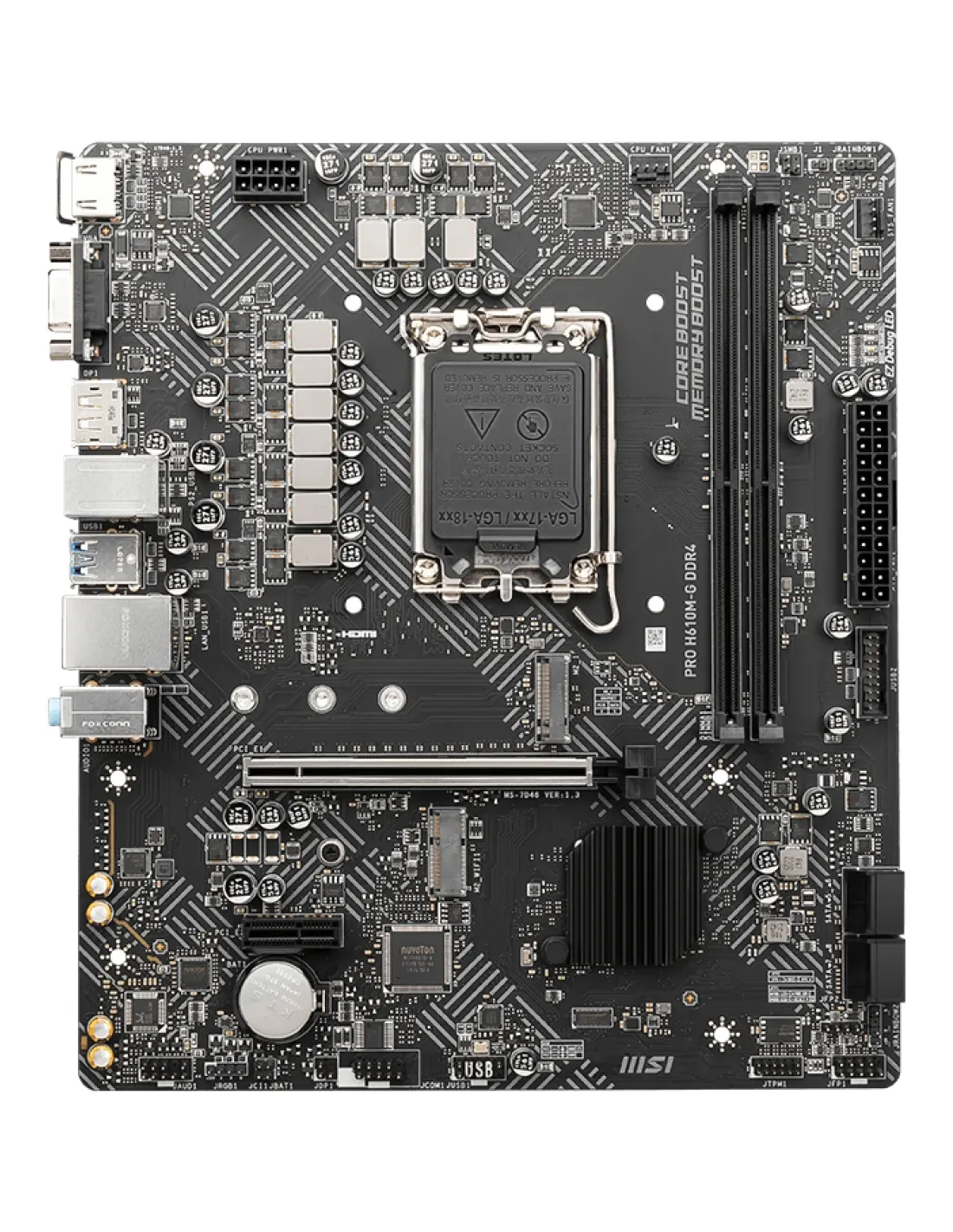PLACA MSI PRO H610M-G DDR4,INTEL,1700,H610,2DDR4,64,VGA+HDMI+DP,4SATA3+1M.2,2USB2.0,2USB3.2,USB-C,1GBLAN,MATX