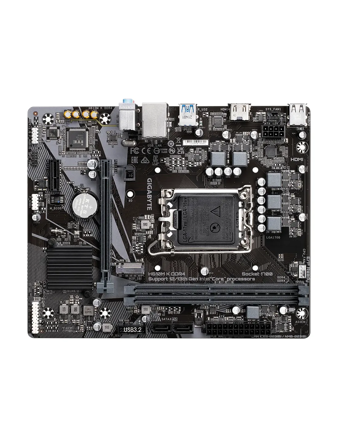 PLACA GIGABYTE H610M K DDR4,INTEL,1700,H610,2DDR4,64GB,HDMI,GBLAN,2SATA3+M.2,4USB3.2,MATX