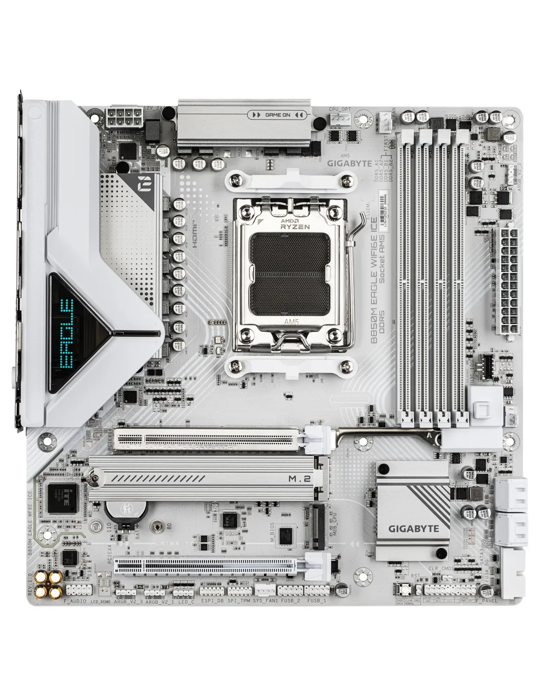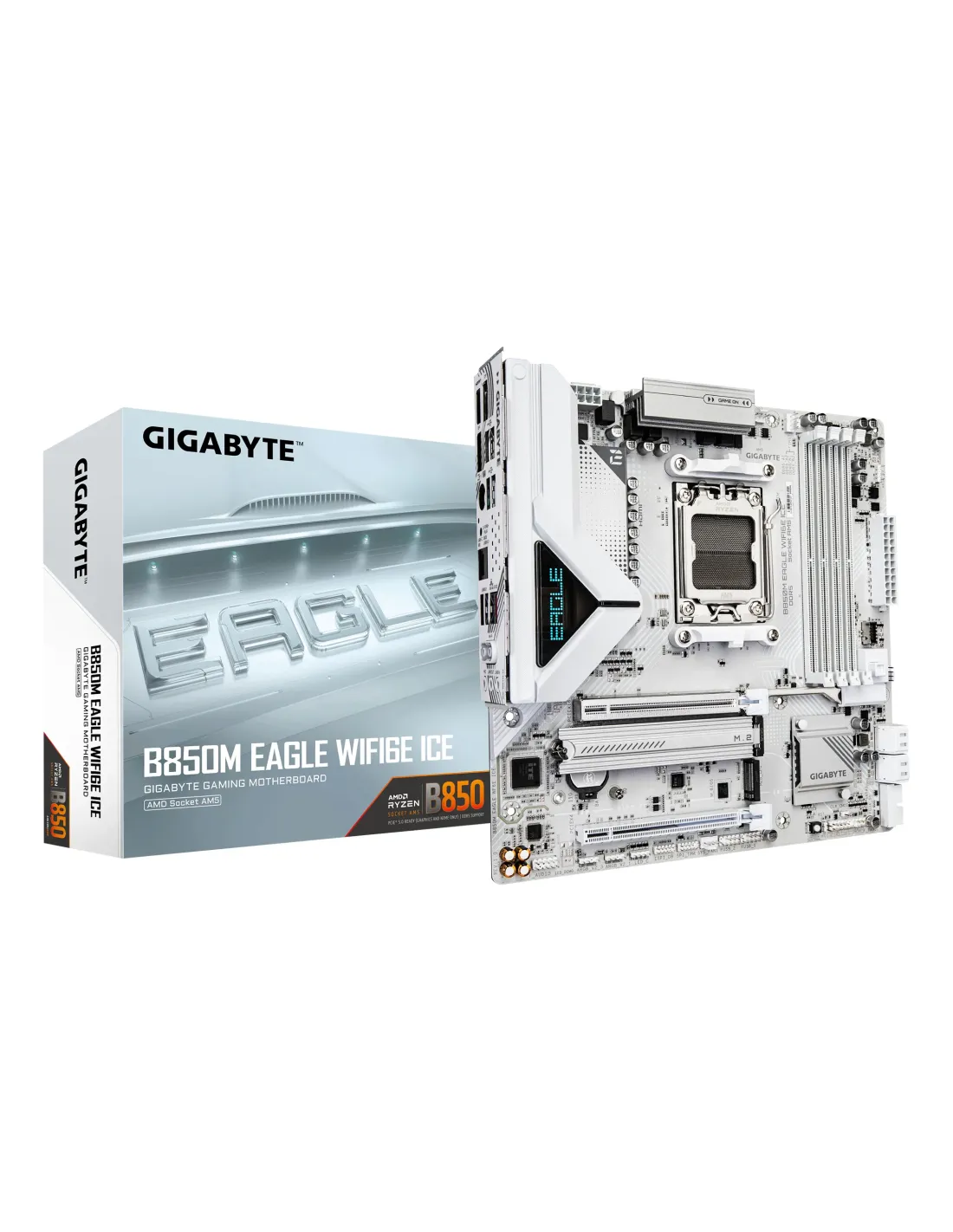 PLACA GIGABYTE B850M EAGLE WIFI6E ICE (BLANCO),AMD,AM5,B850,4DDR5,256GB,1HDMI+1DP,4SATA3+3M.2,GBELAN+WIFI6E+BT5.3,4USB3.2,MATX