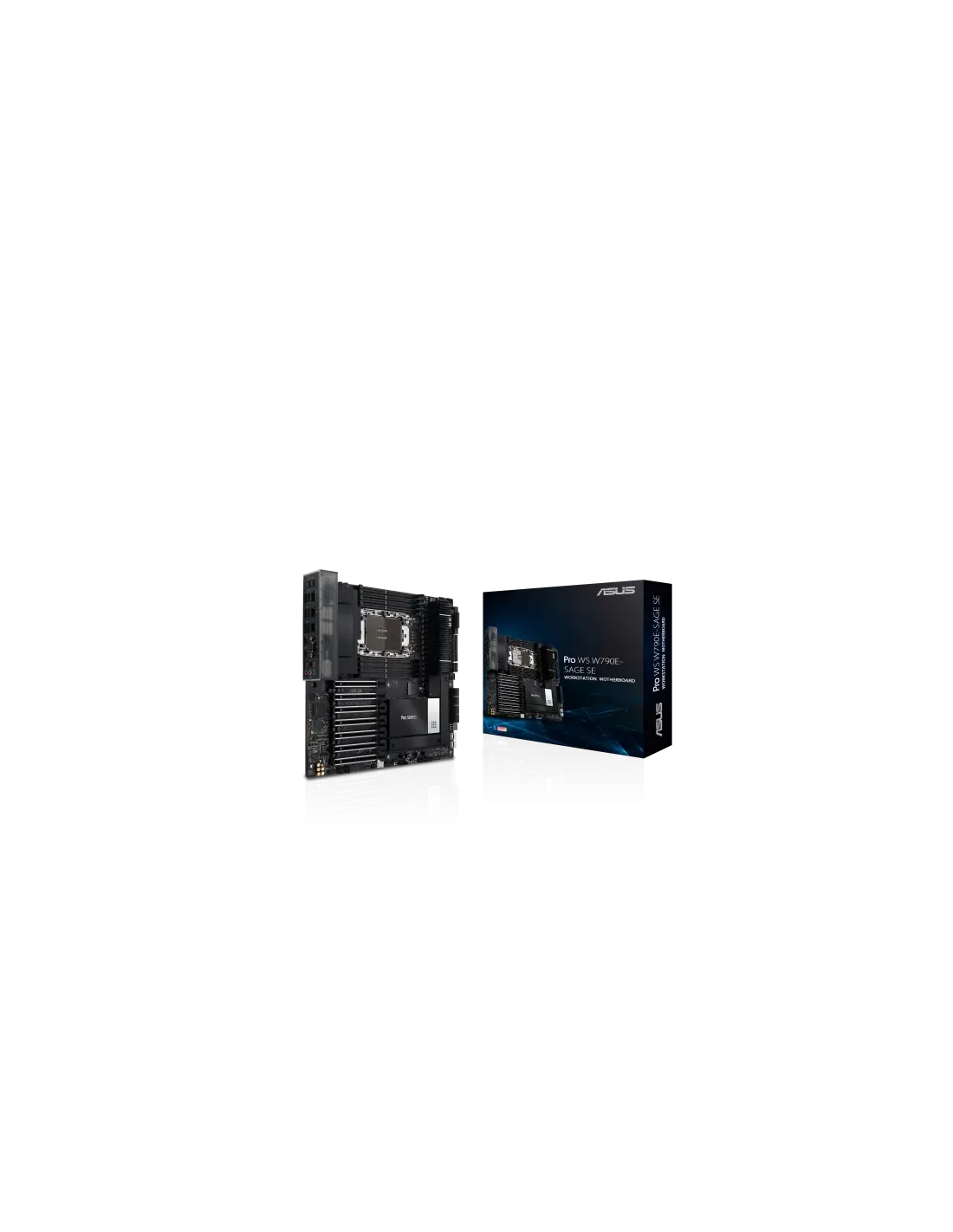 ASUS PRO WS W790E-SAGE SE. Fabricante de procesador: Intel, Socket de procesador: LGA 4677, Procesador compatible: Intel® Xeon® W. tipos de memoria compatibles: DDR5-SDRAM, Memoria interna máxima: 2,05 TB, Tipo de ranuras de memoria: DIMM. Interfaces de disco de almacenamiento soportados: SlimSAS, M.2, SATA III, Tipos de unidades de almacenamiento admitidas: HDD & SSD, Niveles RAID: 0, 1, 5, 10. Tipo de interfaz ethernet: 10 Gigabit Ethernet, Gigabit Ethernet. Componente para: Puesto de trabajo, Factor de forma: EEB, Familia del chipset: Intel