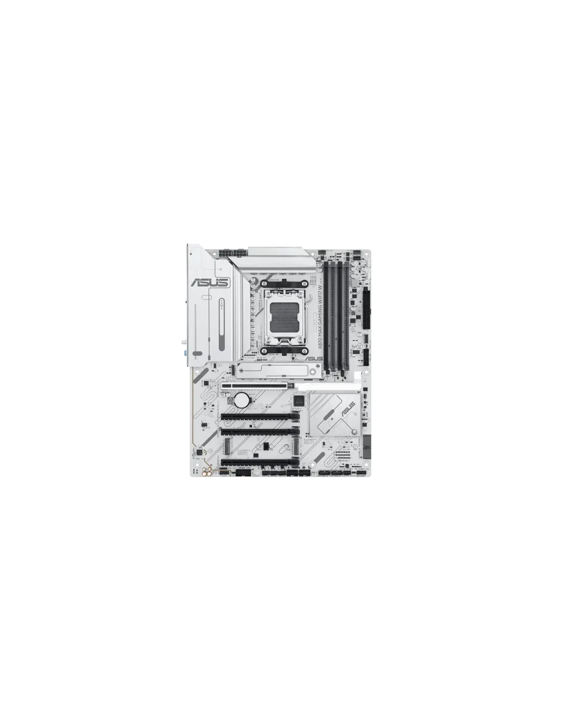 ASUS X870 MAX GAMING WIFI7 W. Fabricante de procesador: AMD, Socket de procesador: Zócalo AM5, Procesador compatible: AMD Ryzen 7000 Series, AMD Ryzen 8000 Series, AMD Ryzen 9000 Series. tipos de memoria compatibles: DDR5-SDRAM, Memoria interna máxima: 256 GB, Tipo de ranuras de memoria: DIMM. Interfaces de disco de almacenamiento soportados: PCI Express 4.0, PCI Express 5.0, SATA III, Tipos de unidades de almacenamiento admitidas: HDD & SSD, Niveles RAID: 0, 1, 5, 10. Máxima resolución: 3840 x 2160 Pixeles. Conector USB: USB tipo A, USB Tipo C