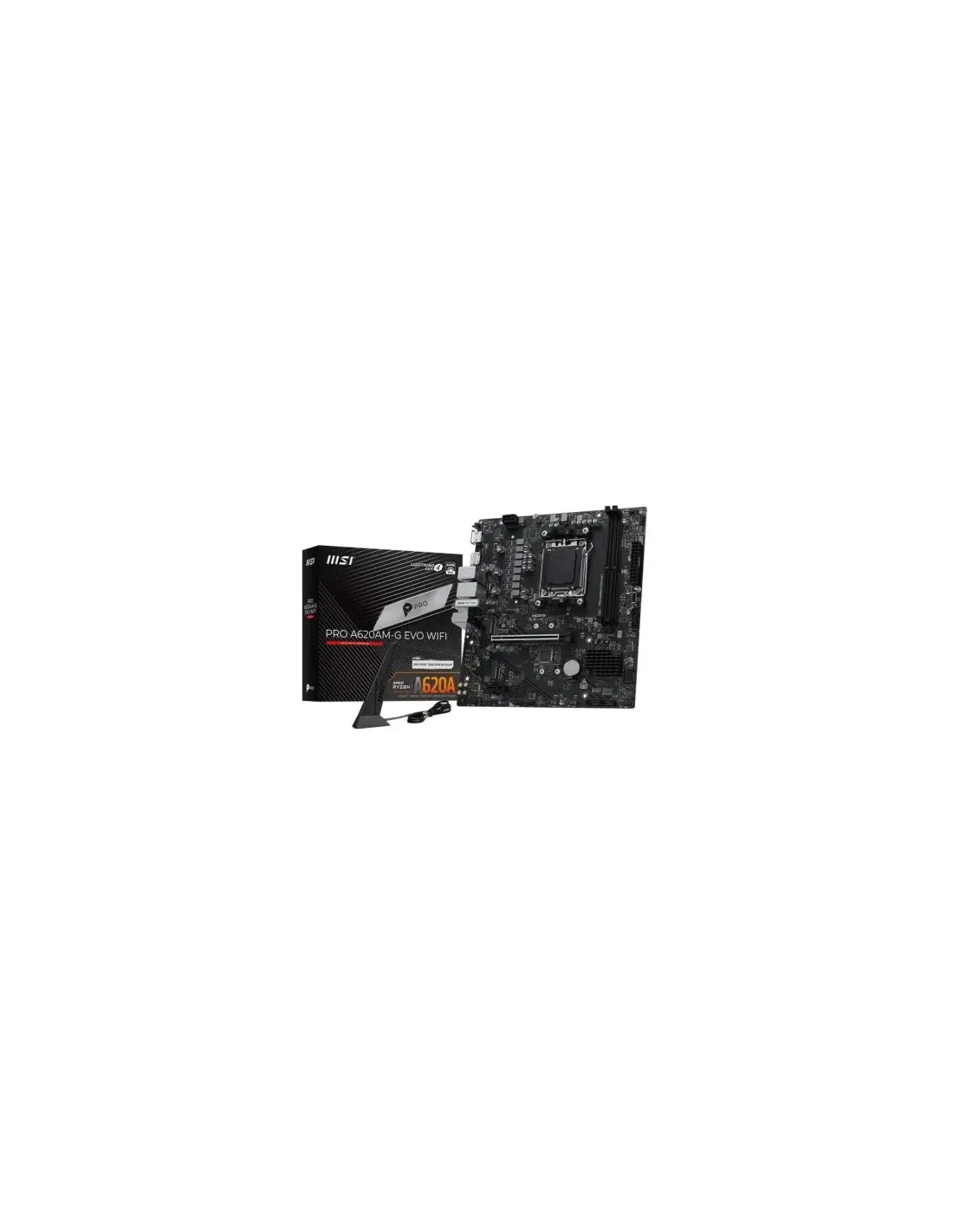 PLACA MSI PRO A620AM-G EVO WIFI,AMD,AM5,A620,2DDR5,128GB,DP+HDMI,2.5GBLAN+WIFI6E+BT5.3,4SATA6+2XM.2,7USB3.2,MATX