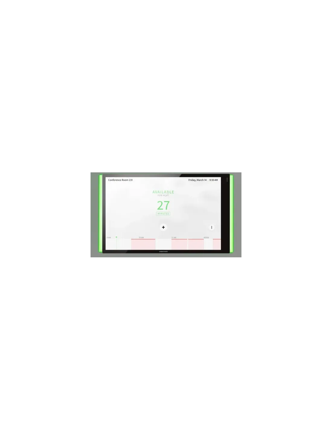Creston barra de luz de disponibilidad de espacio para la serie TSW-1070, (TSW-1070-LB-B-S) Se monta en una pantalla táctil de las series TSW‑1070 o TSS‑1070 fuera de una sala de reuniones para proporcionar una indicación visual de 180° de la disponibilidad de la sala. Se ilumina en verde si la habitación está disponible y en rojo cuando está reservada, con opciones para programación y mezcla de colores personalizados.