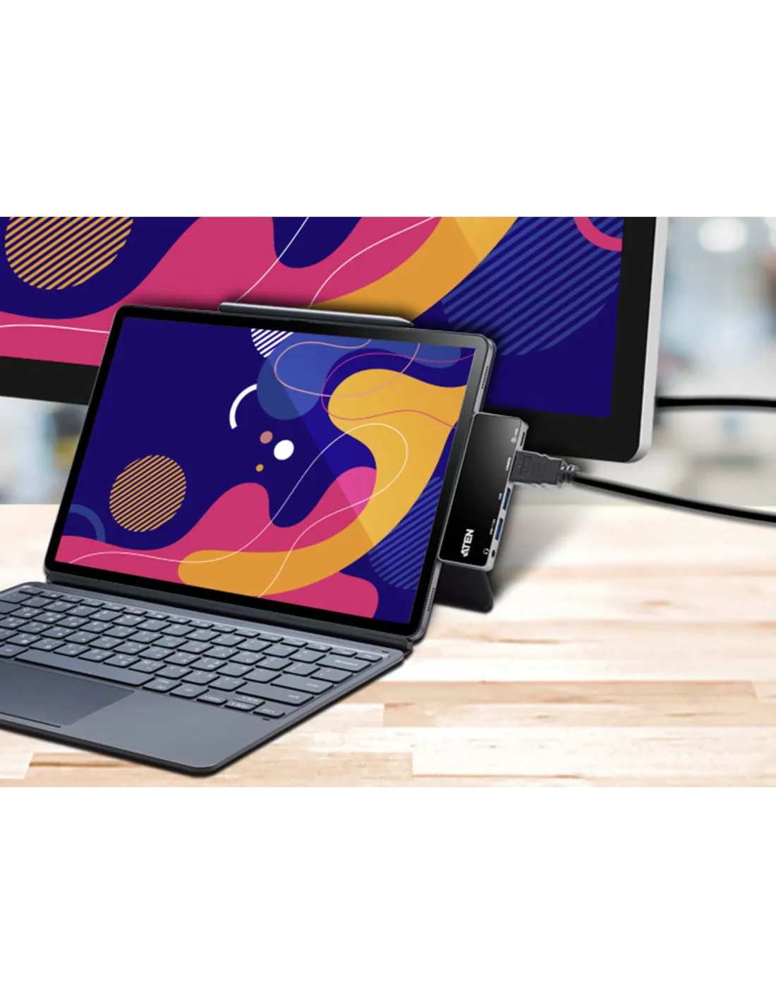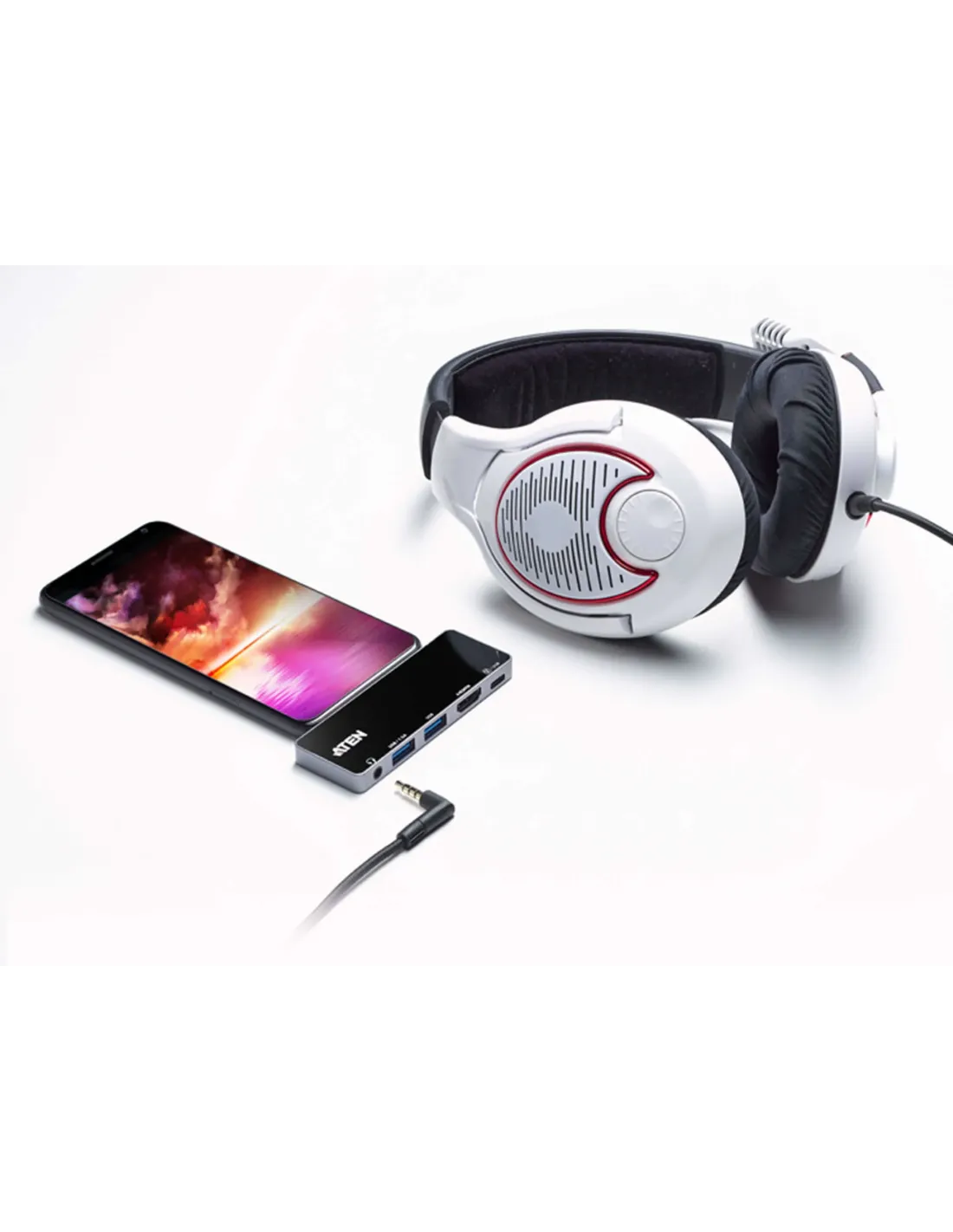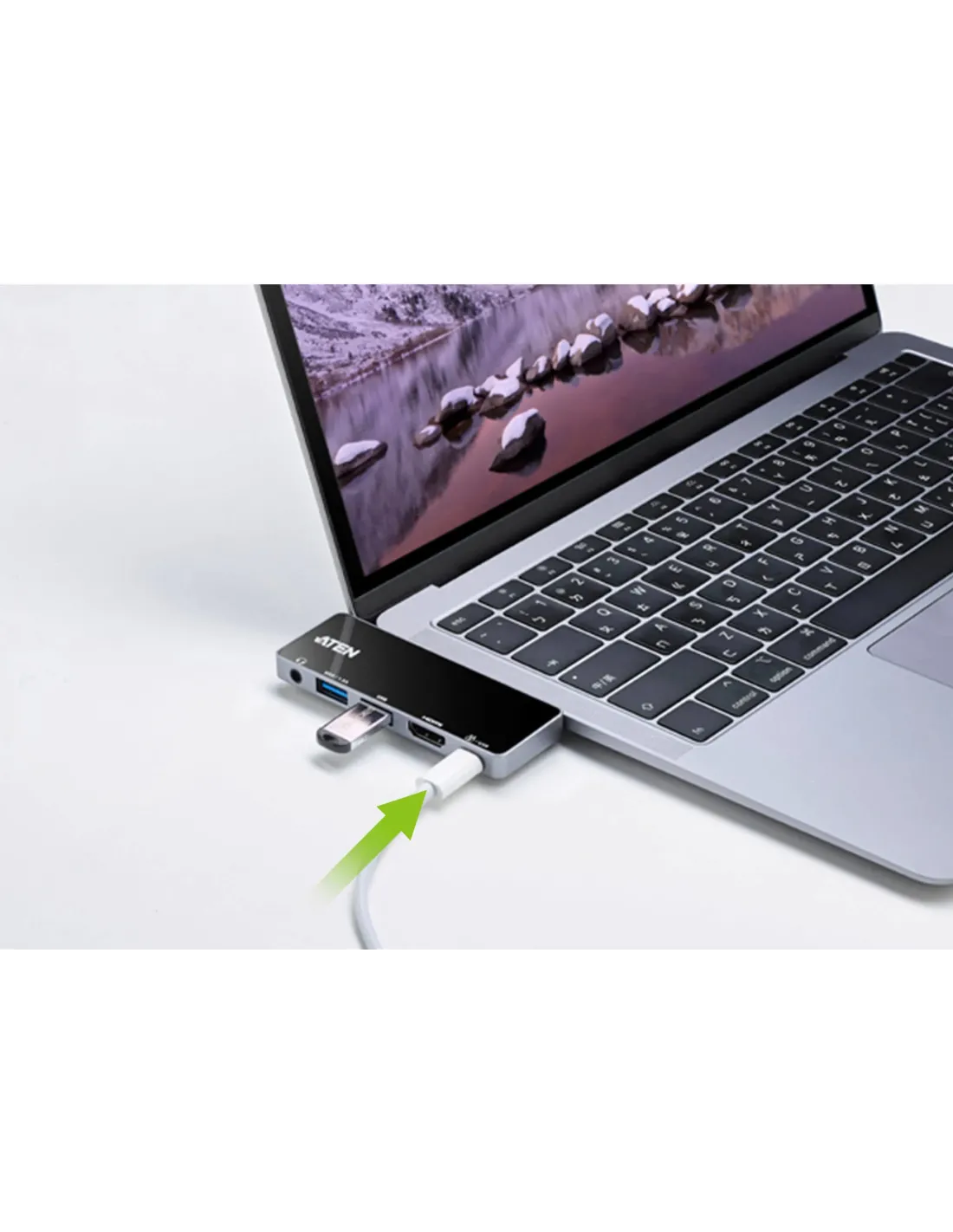 ATEN Docking station de viaje USB-C con pasarela de alimentación, Universal, USB Tipo C, Negro, Plata