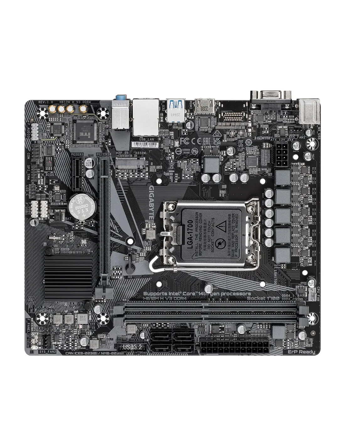 PLACA GIGABYTE H610M H V3 DDR4,INTEL,1700,H610,2DDR4,64GB,VGA+HDMI,GBLAN,4SATA3+M.2,4USB3.2,MATX