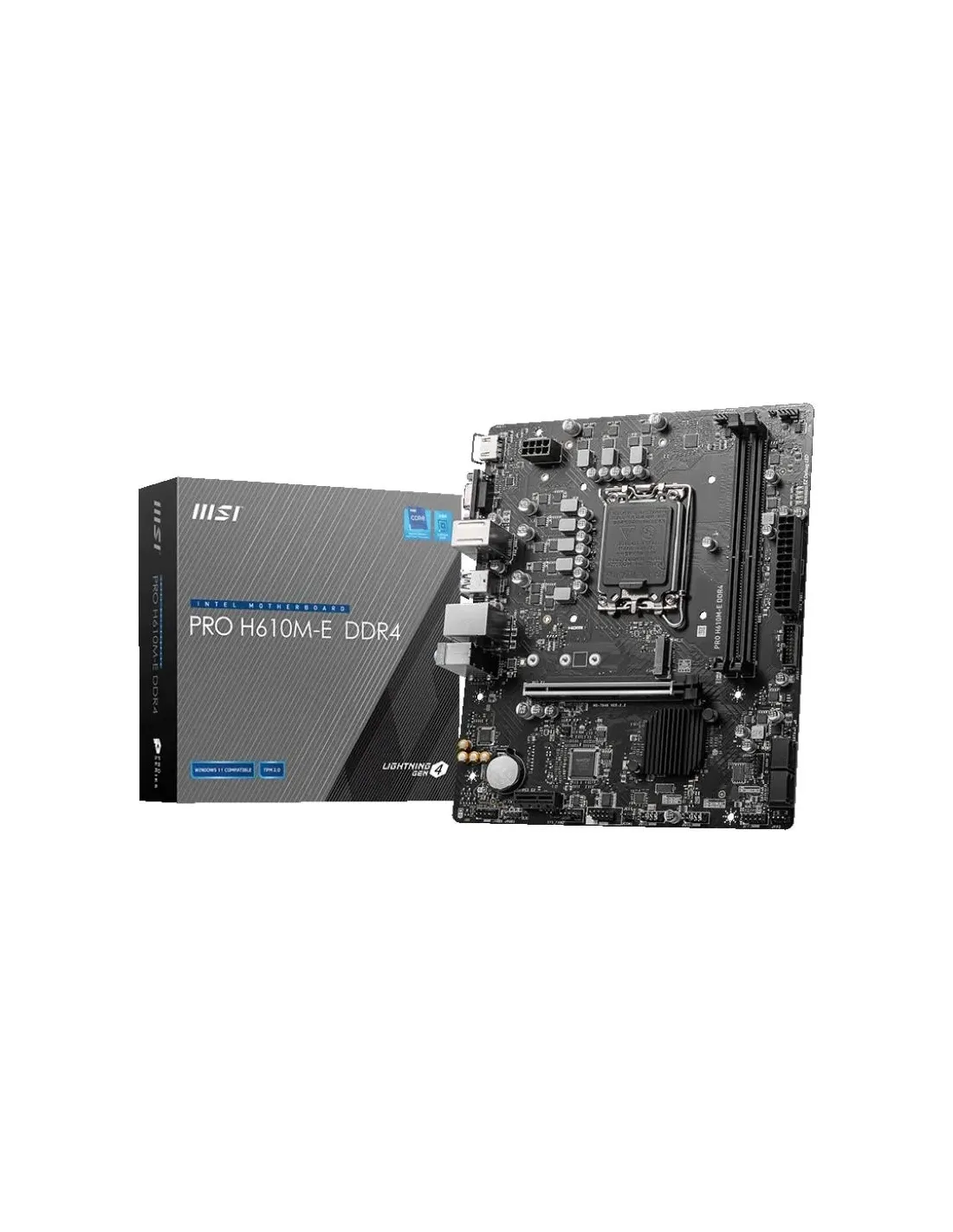 PLACA MSI PRO H610M-E DDR4,INTEL,1700,H610,2DDR4,64,VGA+HDMI,4SATA3+1M.2,8USB2.0,4USB3.2,1GBLAN,MATX