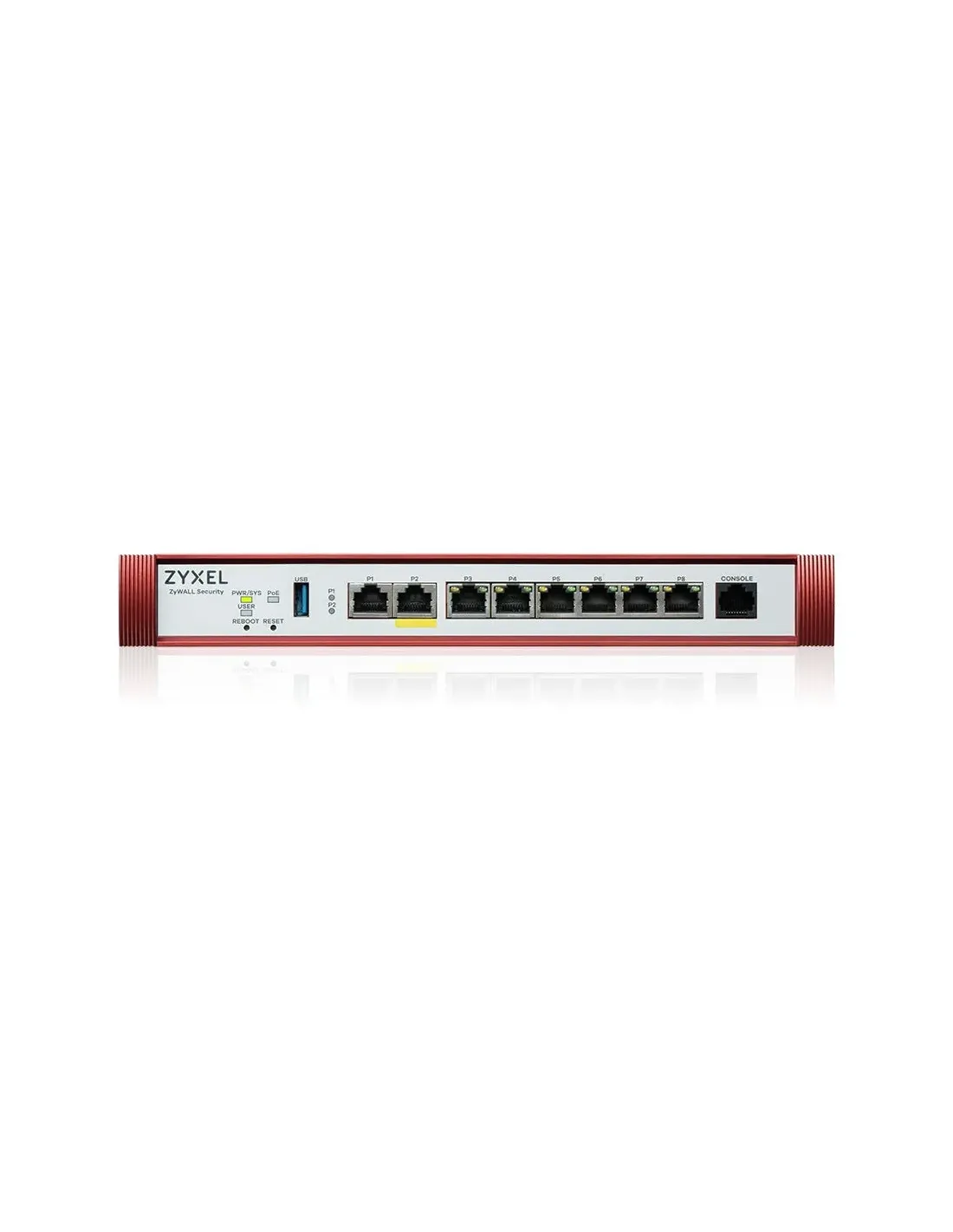 Zyxel USG Flex 100HP. Rendimiento del cortafuegos: 3 Gbit/s, Rendimiento de VPN (IMIX): 750 Mbit/s, IPS / IDS rendimiento: 1500 Mbit/s. Tiempo medio entre fallos: 550382,5753 h. Soporte VPN: IKEv2, IPSec, SSL. Tecnología de conectividad: Alámbrico, Ethernet LAN, velocidad de transferencia de datos: 1000 Mbit/s, Puerto de consola: RJ-45. Voltaje de entrada DC: 19 V, Consumo de energía (max): 51,2 W