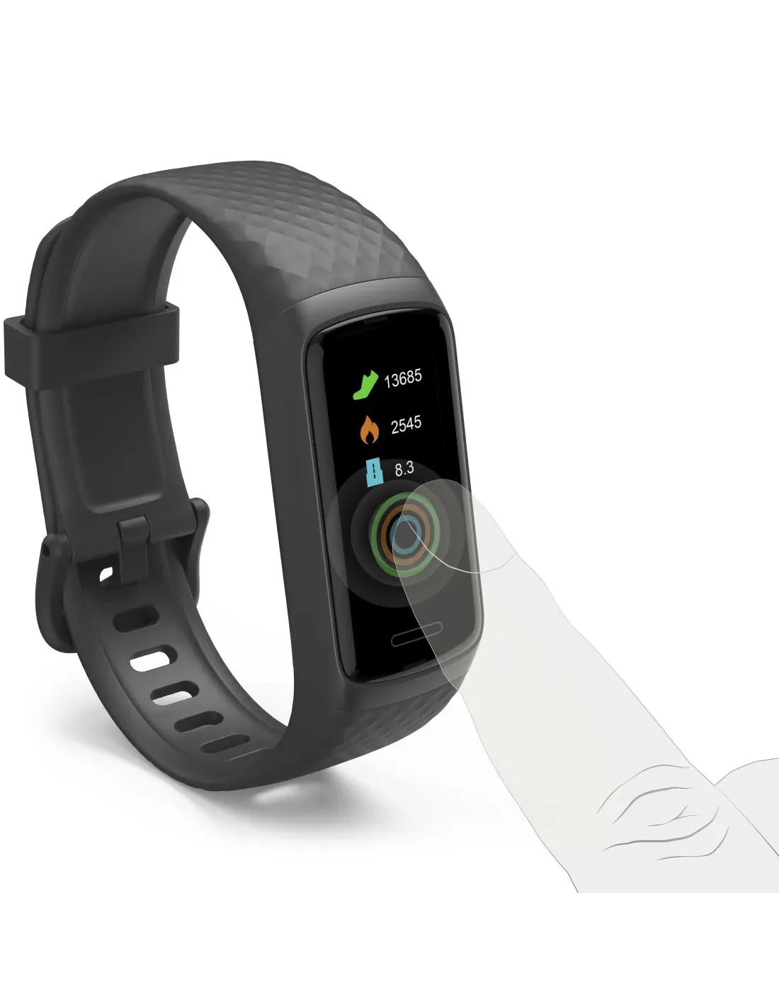Hama Fit Track 3910. Tipo de visualizador: Digital, Diagonal de la pantalla: 2,67 cm (1.05"). Tipo de dispositivo: Funda de brazo para monitor de actividad física, Factor de forma: Rectángulo, Color del producto: Negro. Duración de la batería: 6 día(s), Tecnología de batería: Polímero de litio, Capacidad de batería: 110 mAh. Peso: 25 g, Ancho: 20 mm, Profundidad: 244 mm. Cantidad por paquete: 1 pieza(s)