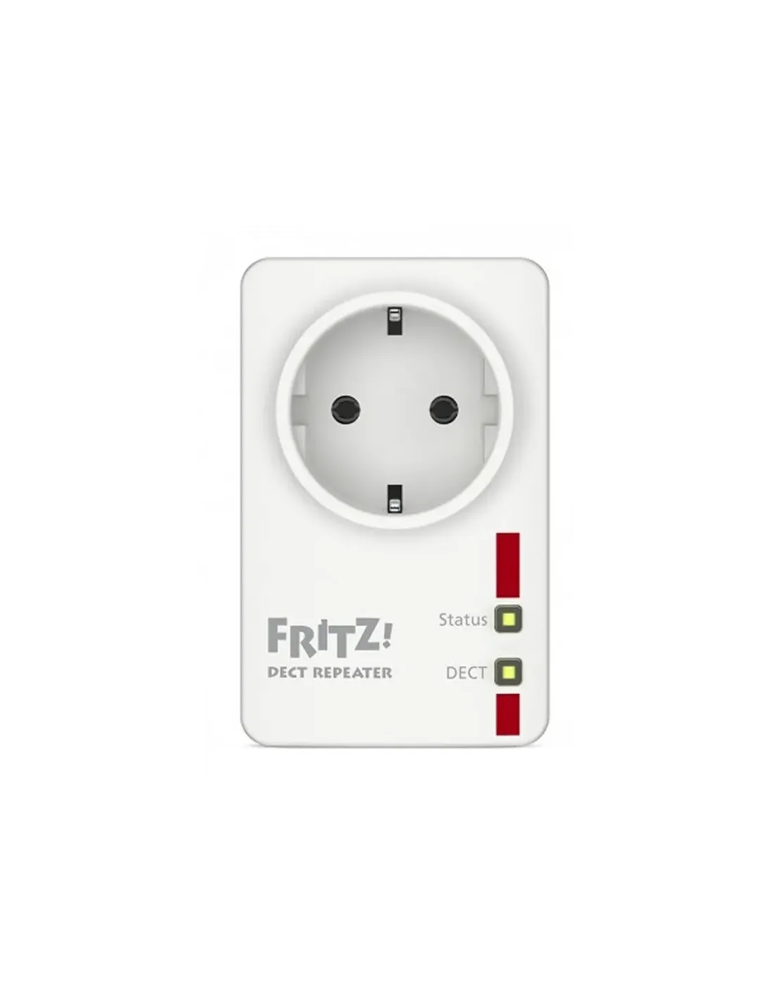 Marca FRITZ! Modelo 20002641 Características - Amplía el área de recepción y emisión de los teléfonos inalámbricos y servicios DECT. - En combinación con un FRITZ!Box como base, conversaciones telefónicas seguras y cifradas. - Posibilidad de establecer hasta tres conversaciones simultáneas. - Permite el traspaso automático de llamadas a través de DECT, de tal manera que durante una llamada se pueda alternar entre la base y el repetidor sin que haya interrupciones. - Función de repetidor también para telefonía HD, radio por Internet y contenido RSS con el FRITZ!Box como base. - Sensor de temperatura. - Registro de la variación de temperatura en las últimas 24 h. - Sensor de temperatura integrado. - Posibilidad de ampliar con otros FRITZ!DECT Repeater el alcance en cualquier dirección. - Compatible con estaciones base DECT con el estándar GAP (funciones básicas) y con la función de repetidor activa. - Amplía la gama para dispositivos domésticos inteligentes compatibles con el estándar “DECT-ULE” (a parti del FRITZ!OS 6.50; el protocolo “HAN FUN” no es soportado) - Toma de corriente integrada: no se pierde ninguna toma. - Puesta en funcionamiento rápida: tan fácil como encender y presionar el botón DECT del FRITZ!Box. - El monitor DECT del FRITZ!Box mostrará información acerca del estado de funcionamiento del repetidor. - Botón DECT: para encender y apagar el repetidor desde la base. - Botón de estado: para encender o apagar los indicadores led en el repetidor. - Actualizaciones automáticas del software a través del FRITZ!Box. Conexiones - Conexión a la corriente eléctrica de 230 voltios, 50 Hz en una toma de tipo F (Schuko, CEE 7/4). - Estándar DECT - Para los dispositivos conectados hasta 2.300 vatios/10 A. Otras Características Requerimientos del sistema - Una toma de corriente de 230 voltios. - FRITZ!Box con base DECT y FRITZ!OS 5.50 (o superior) u otra base DECT con función de repetidor (GAP). Contenido - FRITZ!DECT Repeater 100. - Guía rápida de instalación. Fecha de revisión 08-04-2022 por MPM