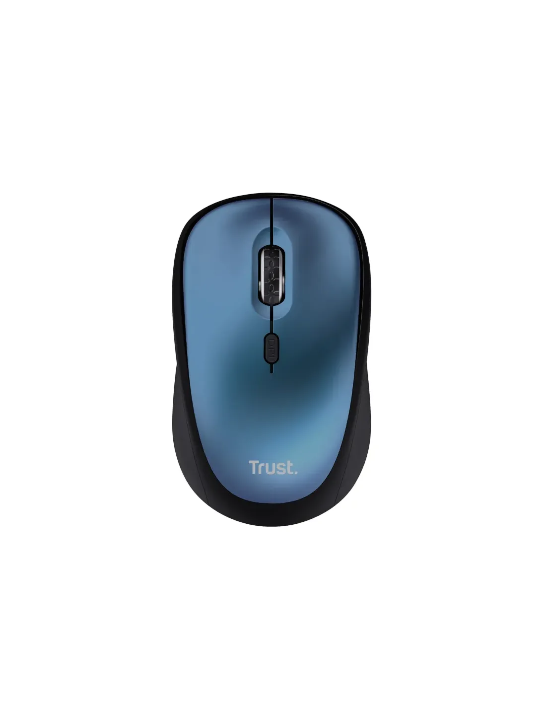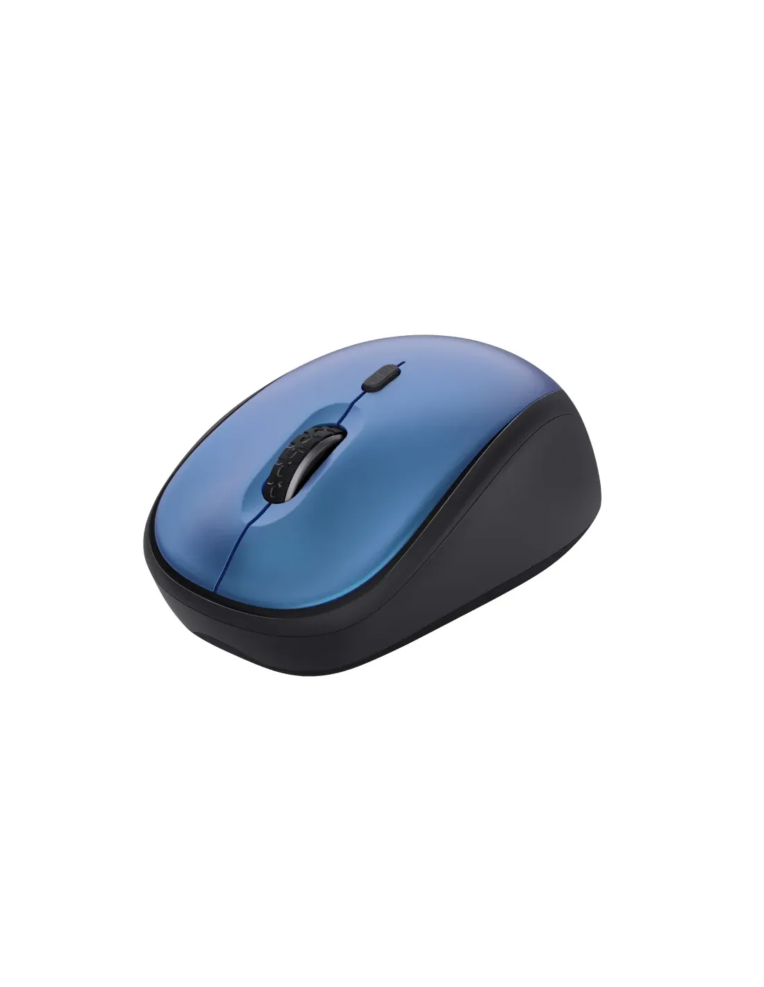 Trust Yvi+. Factor de forma: mano derecha. Tecnología de detección de movimientos: Óptico, Interfaz del dispositivo: RF inalámbrico, Resolución de movimiento: 1600 DPI, Tipo de botones: Botones presionados, Cantidad de botones: 4, Tipo de desplazamiento: Rueda. Fuente de energía: Baterías. Color del producto: Negro, Azul