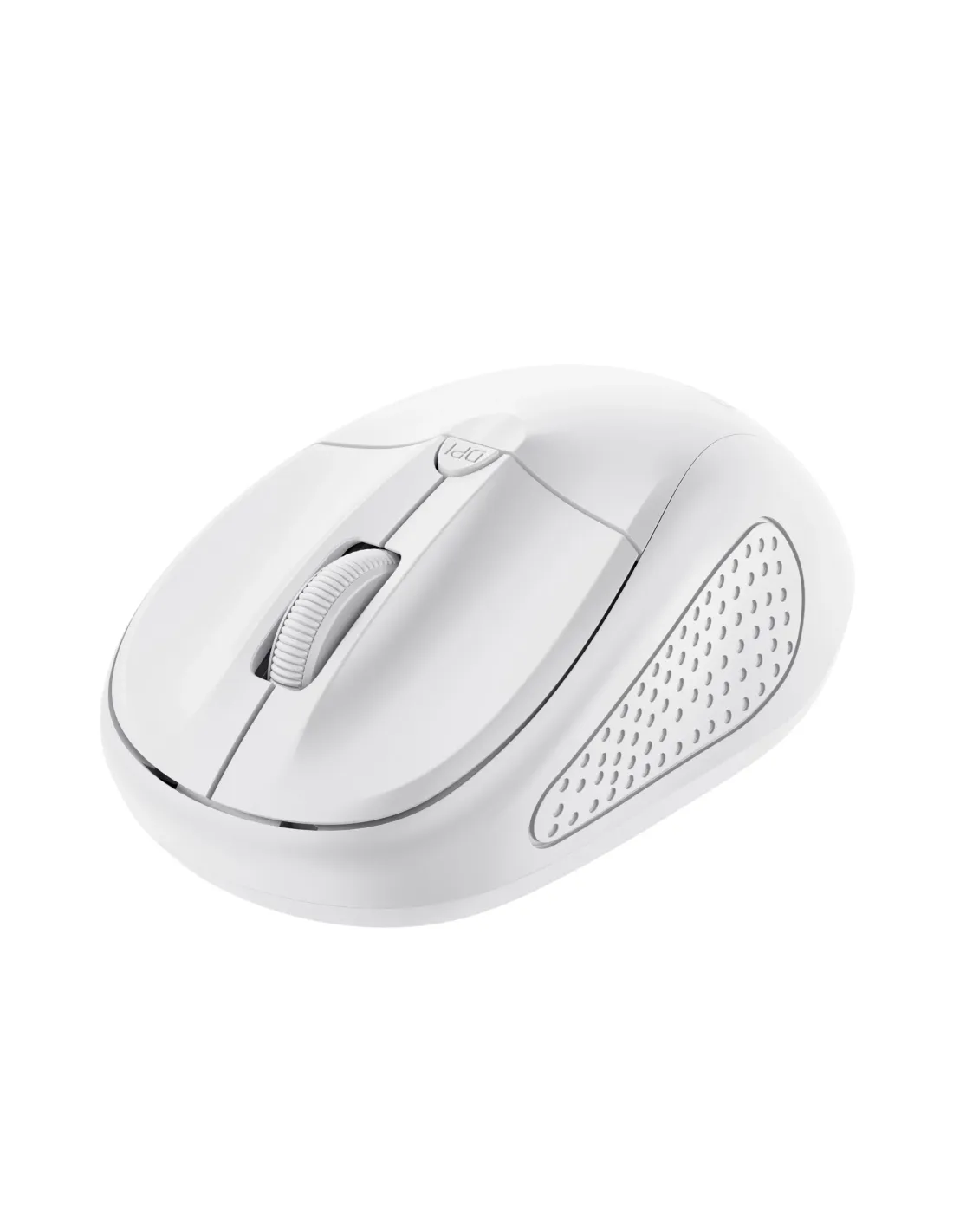 Trust Primo. Factor de forma: Ambidextro. Tecnología de detección de movimientos: Óptico, Interfaz del dispositivo: RF inalámbrico, Resolución de movimiento: 1600 DPI, Tipo de botones: Botones presionados, Cantidad de botones: 4, Tipo de desplazamiento: Rueda. Fuente de energía: Baterías. Color del producto: Blanco