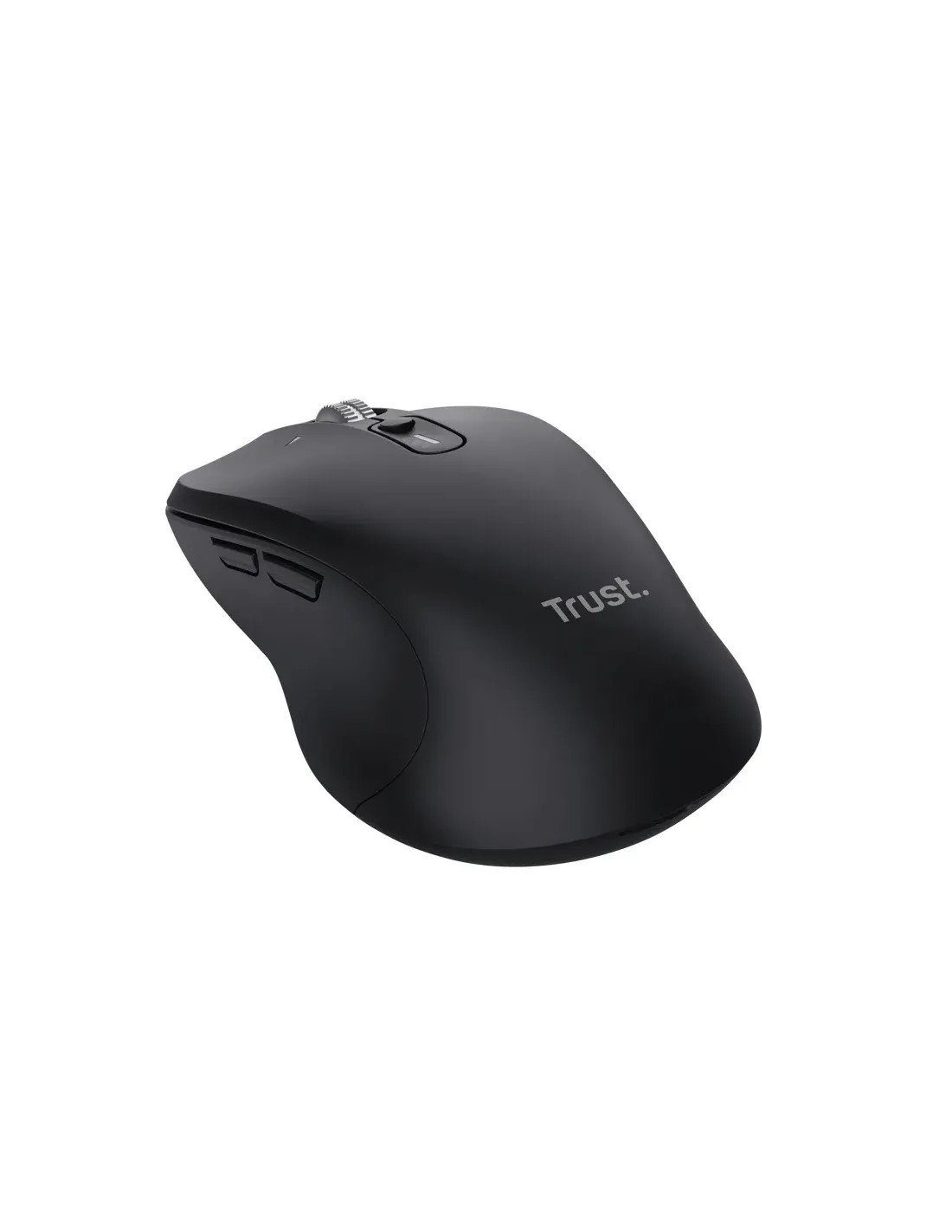 Trust 25673. Factor de forma: Ambidextro. Interfaz del dispositivo: Bluetooth, Resolución de movimiento: 3200 DPI, Cantidad de botones: 9, Tipo de desplazamiento: Rueda. Fuente de energía: Baterías. Color del producto: Negro