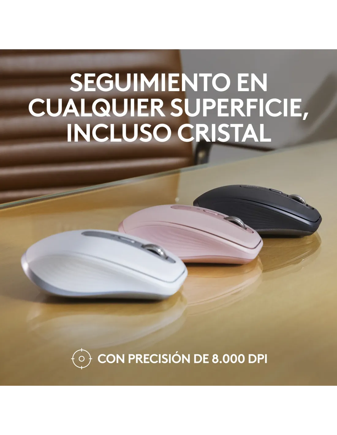 Características del Ratón Logitech MX Anywhere 3S Wireless RosaEl Logitech MX Anywhere 3S es un ratón inalámbrico compacto y de alto rendimiento, pensado para quienes trabajan desde cualquier lugar y necesitan precisión, portabilidad y conectividad avanzada. Su diseño en color rosa, su tecnología de seguimiento mejorada y su compatibilidad multiplataforma lo convierten en una excelente opción para profesionales, estudiantes y usuarios exigentes.Precisión de nivel profesional con sensor de 8000 pppGracias a su tecnología Darkfield Laser Tracking, el MX Anywhere 3S ofrece un seguimiento preciso incluso sobre superficies de vidrio. Su sensor alcanza una resolución de hasta 8000 ppp, ajustable según tus necesidades, ideal tanto para tareas de diseño como para uso general.Sensor óptico con tecnología DarkfieldResolución ajustable hasta 8000 pppPrecisión en cualquier superficie, incluso cristalDiseño compacto y preparado para trabajar en cualquier parteCon unas dimensiones reducidas y un peso ligero, este ratón está pensado para llevarlo siempre contigo. Su batería recargable de larga duración y la conectividad inalámbrica permiten trabajar sin interrupciones.Autonomía de hasta 70 días por cargaIncluye cable de carga USB-CDiseño ergonómico y compacto: solo 99 gConectividad versátil y multiplataformaEl MX Anywhere 3S puede emparejarse con hasta tres dispositivos y cambiar entre ellos con solo pulsar un botón. Es compatible con los sistemas operativos más habituales y se conecta vía Bluetooth, sin necesidad de receptor adicional.Conexión inalámbrica vía BluetoothCompatible con Windows, macOS, Linux, Android, iPadOS y ChromeOSCambio rápido entre tres dispositivos emparejadosExperiencia silenciosa y fluidaEste modelo incorpora la tecnología Quiet Clicks para una experiencia de uso más silenciosa, ideal para entornos compartidos. Además, su rueda de desplazamiento MagSpeed permite moverse rápidamente por documentos o webs con una respuesta suave y precisa.6 botones con funciones personalizablesRueda MagSpeed: desplazamiento ultrarrápido y precisoTecnología Quiet Clicks para clics silenciososDiseño responsable con el medioambienteEl Logitech MX Anywhere 3S ha sido fabricado con un 61 % de plástico reciclado posconsumo y cuenta con certificación CarbonNeutral® y materiales con sello FSC®, lo que refuerza el compromiso de la marca con la sostenibilidad.61 % de plástico reciclado en su fabricaciónCertificación CarbonNeutral® y materiales FSC®Otras especificacionesInterfaz adicional: 1 x USB tipo A (para carga)Dimensiones: 10,05 x 6,5 x 3,44 cmPeso: 99 gBatería: 500 mAh, litio-polímeroDurabilidad: hasta 10 millones de clicsIndicador LED de estado