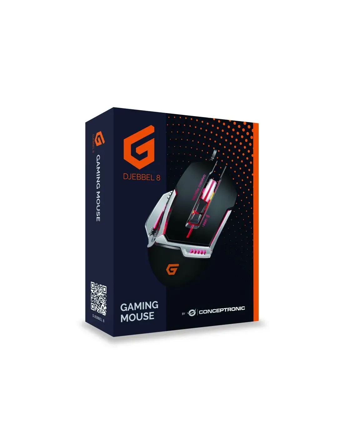 Conceptronic DJEBBEL 8, Óptico, USB tipo A, 4000 DPI, 1 ms, Negro, Plata