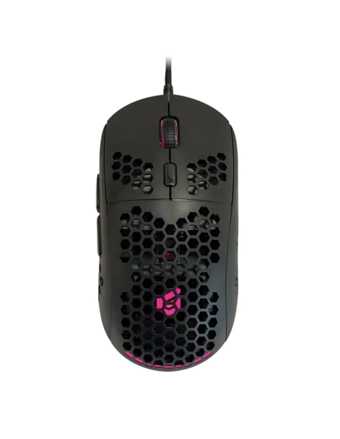 Carcasa de nido de abeja ultraligera Ajustable hasta 6400 DPI (800/1600/2400/3200/4800/6400) 6 botones programables (solo para Windows) Modo de luz RGB ajustable Diseño ergonómico para un uso prolongado Cable USB trenzado de 1,6 m Adecuado para usuarios diestros Experimente lo último en rendimiento de juegos con el mouse para juegos Conceptronic DJEBBEL. La carcasa de nido de abeja hace que el mouse sea ultraligero y, por lo tanto, rápido y fácil de mover. La construcción de panal también proporciona ventilación para mantener la mano fresca durante un uso prolongado. Todos los botones se pueden personalizar para realizar diferentes funciones, con un software personalizado que permite la edición de macros. Una parte absolutamente esencial del conjunto de herramientas de cualquier jugador serio.