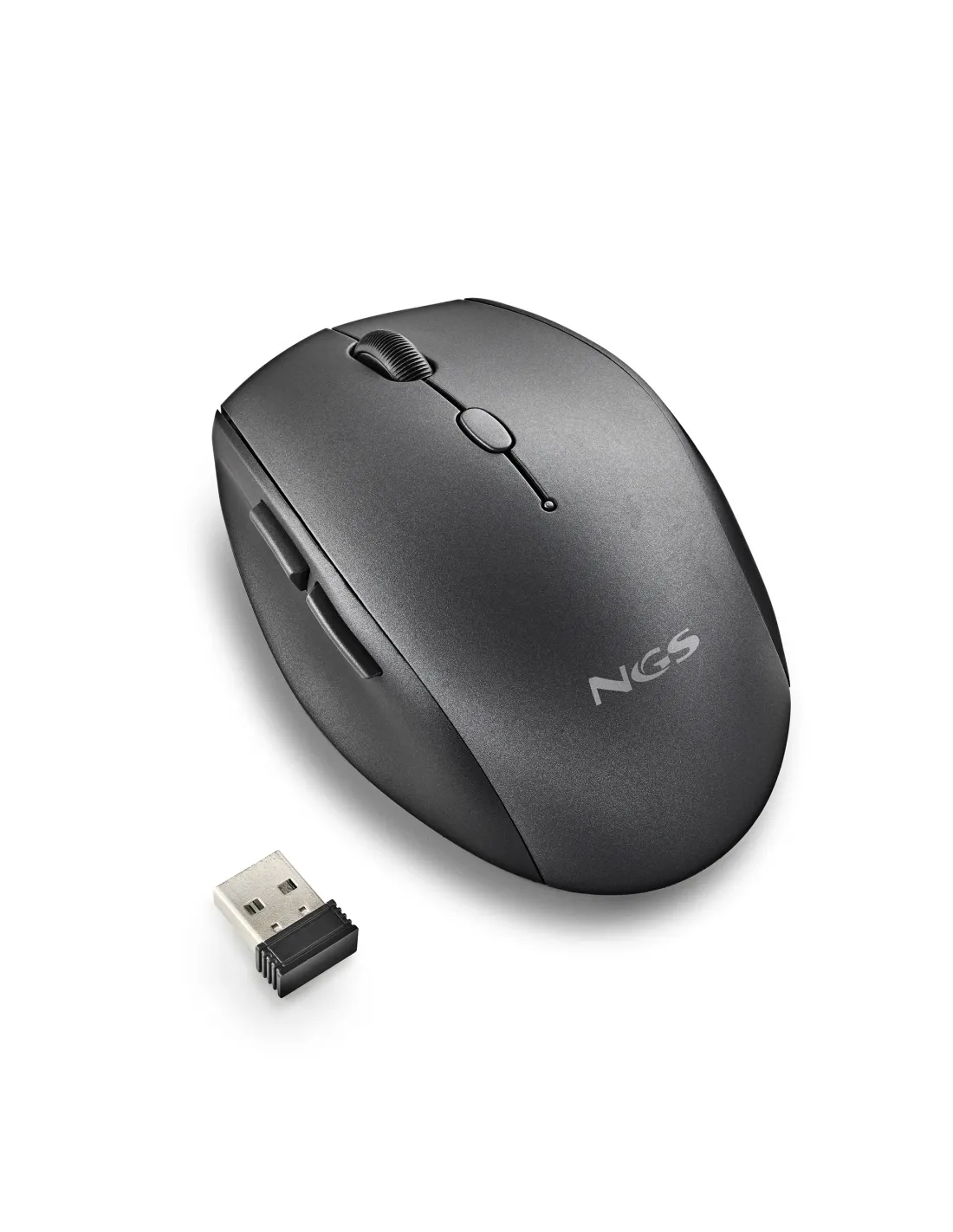 NGS BEE, mano derecha, Diseño vertical, Óptico, RF inalámbrico, 1600 DPI, Negro