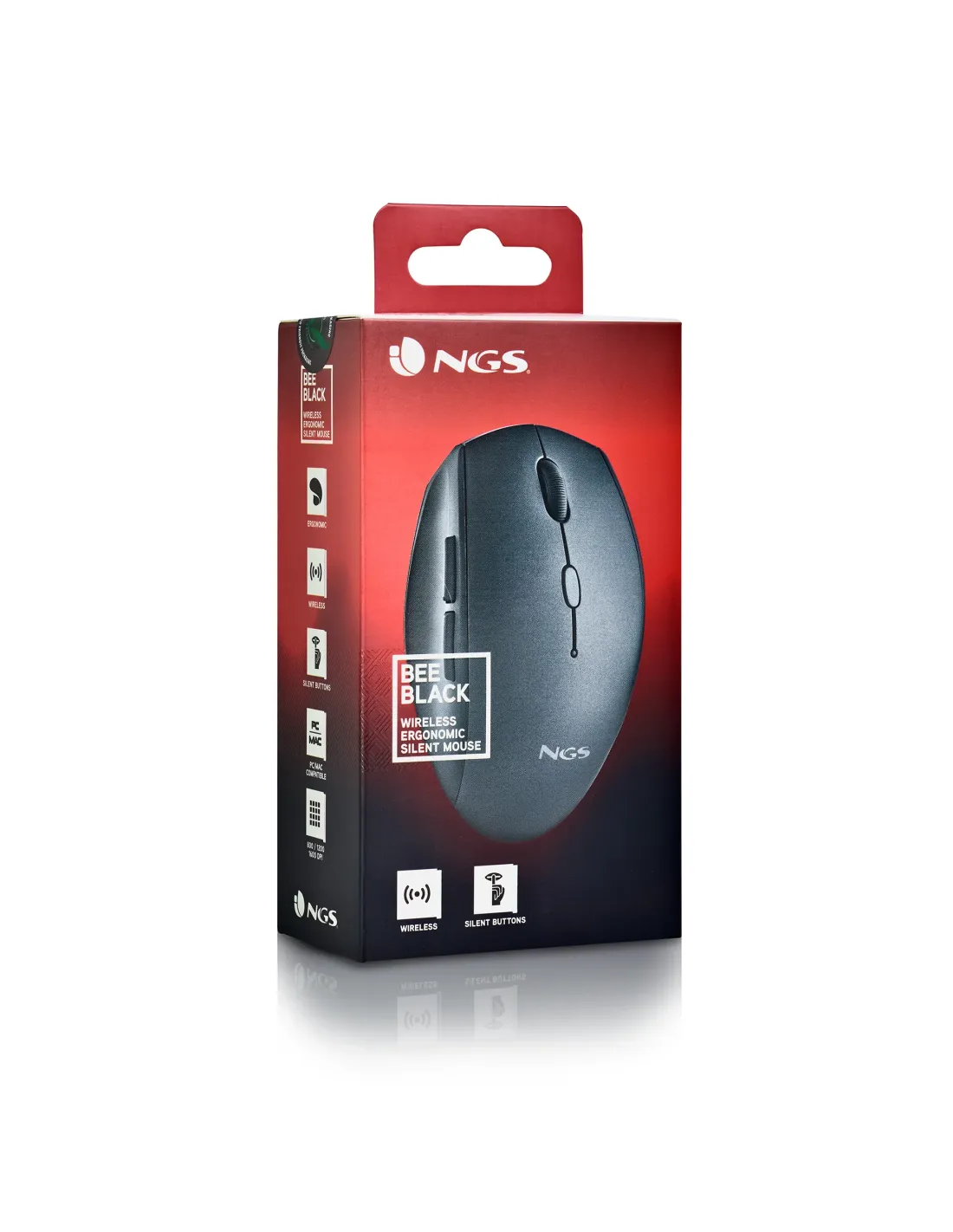Marca NGS Modelo BEEBLACK Características - Ratón inalámbrico ergonómico con teclas silenciosas - 5 botones y una rueda de desplazamiento - Botones silenciosos (reduceun 95%) - 2 x botones adicionales en la zona del pulgar - Conexión inalámbrica de 2,4 GHz - Diseñado especialmente para diestros - DPI ajustables: 800/1200/1600 - Instalación "Plug and Play" Dimensiones - 110 x 68 x 42 mm Contiene - BEE - 1 x pila alcalina AA - Receptor nano USB - Guía de instalación Fecha de revisión 18-07-2024 por RTY