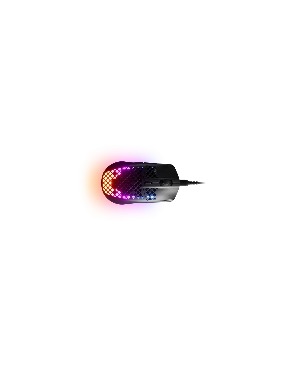 Steelseries Aerox 3. Factor de forma: mano derecha. Tecnología de detección de movimientos: Óptico, Interfaz del dispositivo: USB Tipo C, Resolución de movimiento: 8500 DPI, Tiempo de respuesta: 1 ms, Tipo de botones: Botones presionados, Cantidad de botones: 6, Tipo de desplazamiento: Rueda, Aceleración (máx.): 35 G. Iluminación de color: Multi. Fuente de energía: Cable. Color del producto: Negro