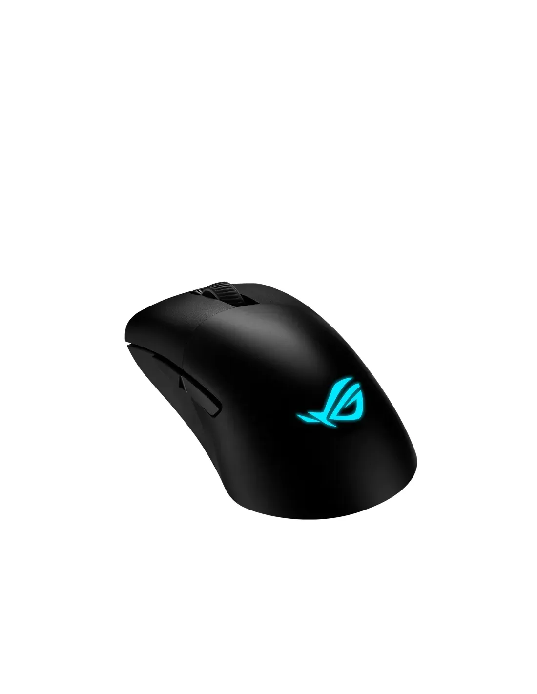 ASUS ROG Keris Wireless AimPoint. Factor de forma: mano derecha. Tecnología de detección de movimientos: Óptico, Interfaz del dispositivo: RF Wireless + Bluetooth + USB Type-C, Resolución de movimiento: 36000 DPI, Tipo de botones: Botones presionados, Cantidad de botones: 5, Tipo de desplazamiento: Rueda, Aceleración (máx.): 50 G. Iluminación de color: Azul, Verde, Rojo. Fuente de energía: Baterías/Cable. Color del producto: Negro