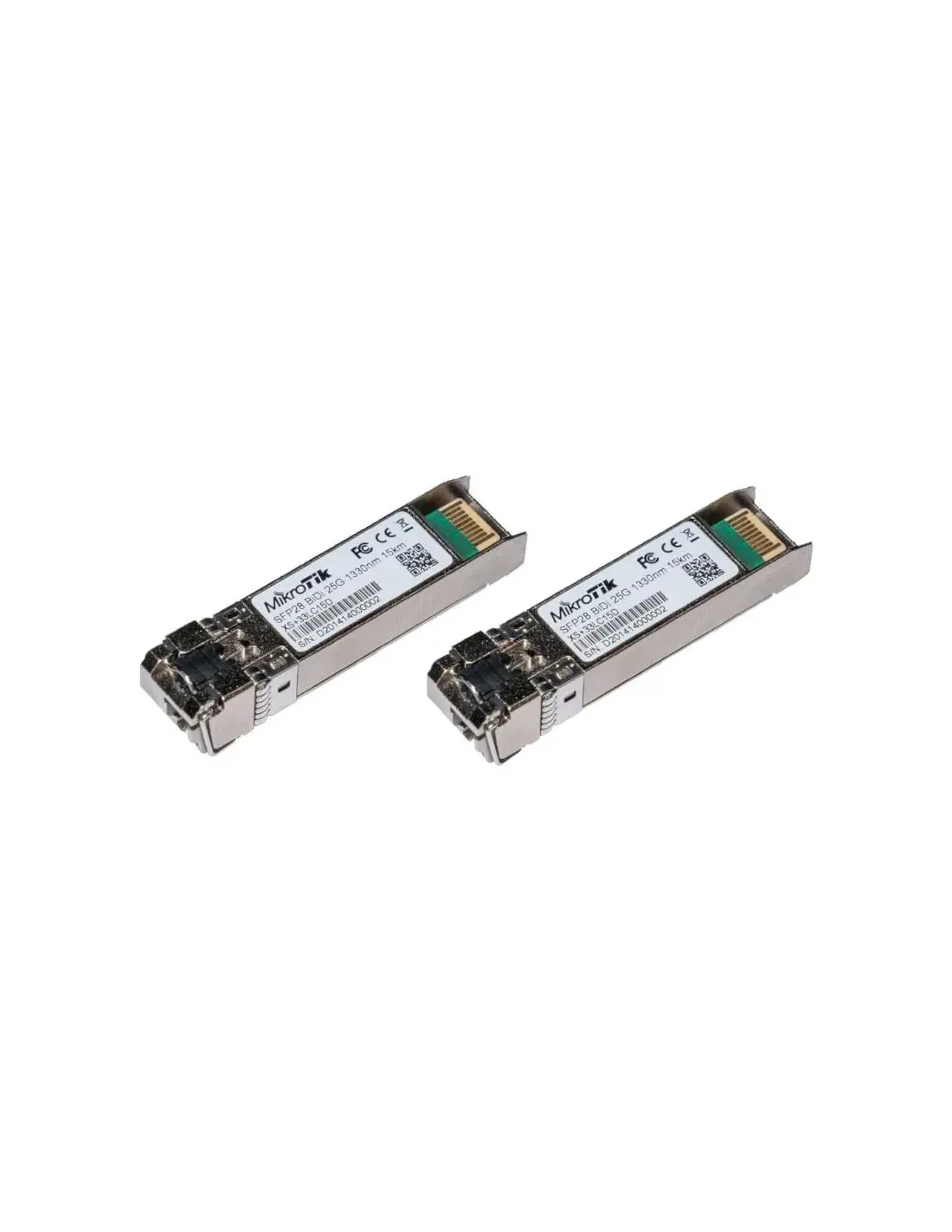 Marca MikroTik Modelo XS+2733LC15D Características - Formato SFP / SFP+ / SFP28 - Velocidad de datos: 1G / 10G / 25G - Distancia: 15 Km - Longitud de onda: 1270 nm / 1330 nm - Consumo máximo de energía: 1,5 W Fecha de revisión 31-03-2025 por DR