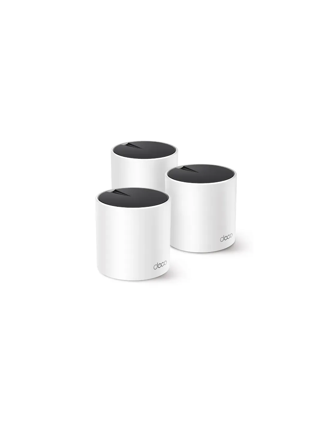 TP-Link AX3000. Color del producto: Blanco, Tipo de antena: Interno, Tipo de producto: Enrutador de malla. Banda Wi-Fi: Doble banda (2,4 GHz / 5 GHz), Estándar Wi-Fi: Wi-Fi 6 (802.11ax), Wi-Fi estándares: 802.11a, 802.11b, 802.11g, Wi-Fi 4 (802.11n), Wi-Fi 5 (802.11ac), Wi-Fi 6 (802.11ax). Frecuencia del procesador: 1 GHz, Seguridad con cortafuegos: SPI Firewall, Potencia de transmisión (CE): 20 - 23 dbm. Ancho: 110 mm, Profundidad: 110 mm, Altura: 114 mm. Número de productos incluidos: 3 pieza(s), Número de unidades incluidas: 3 pieza(s)