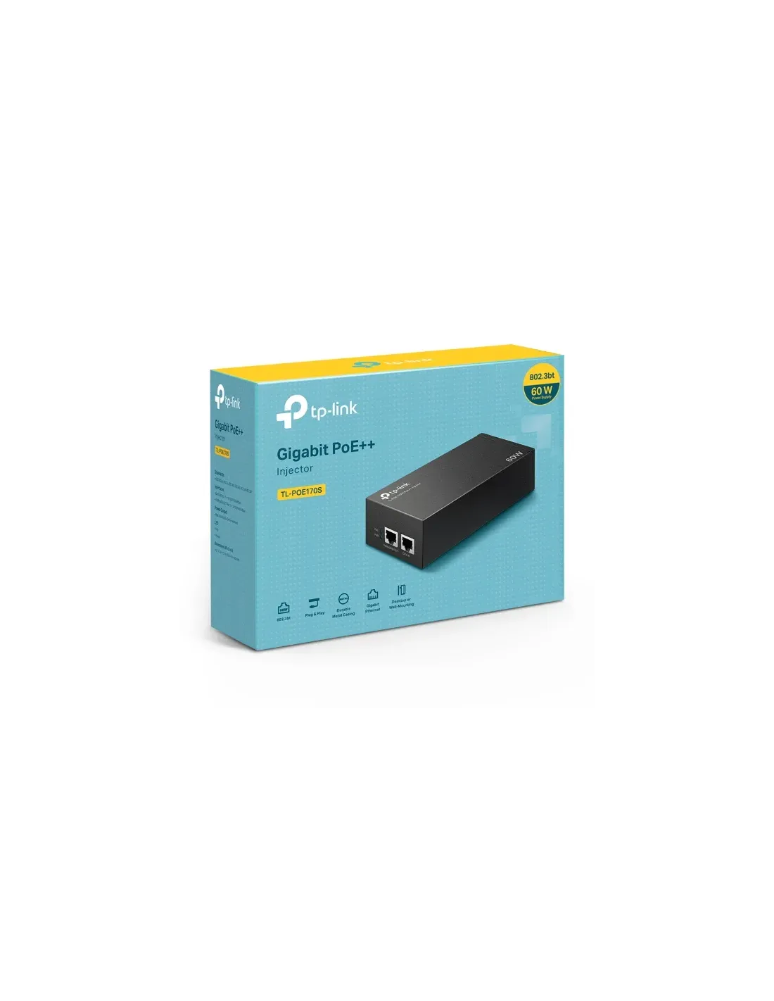 TP-LINK ADAPTADOR INYECTOR POE ++ PUERTO: 1 PUERTO GIGABIT POE, 1 PUERTO GIGABIT NO POE SPEC: COMPATIBLE CON 802.3BT /AT/AF, ALIMENTACION POE DE 60 W, DATOS Y ALIMENTACIÓN TRANSPORTADOS POR EL MISMO CABLE HASTA 100 METROS, CAJA DE ACERO, TAMAÑO DE BOLSIL