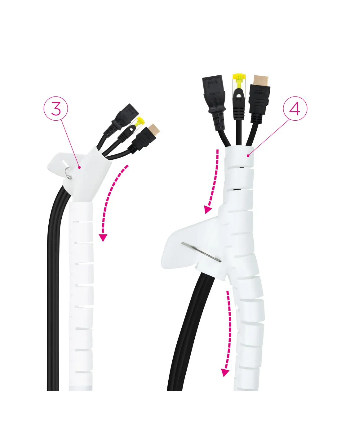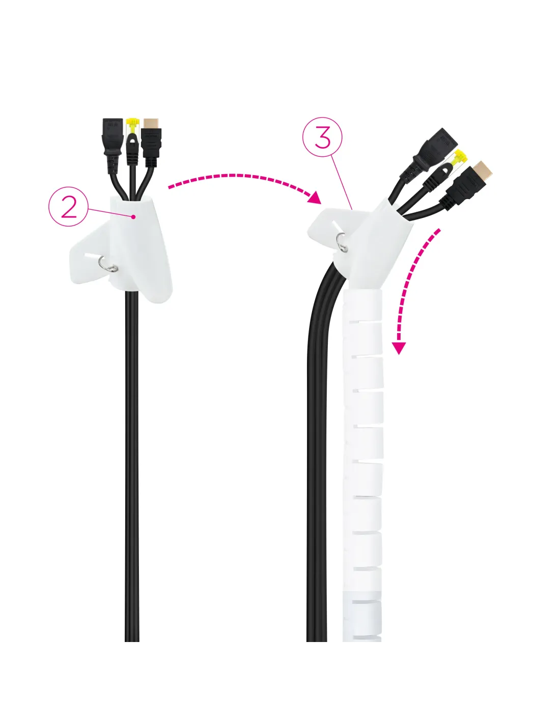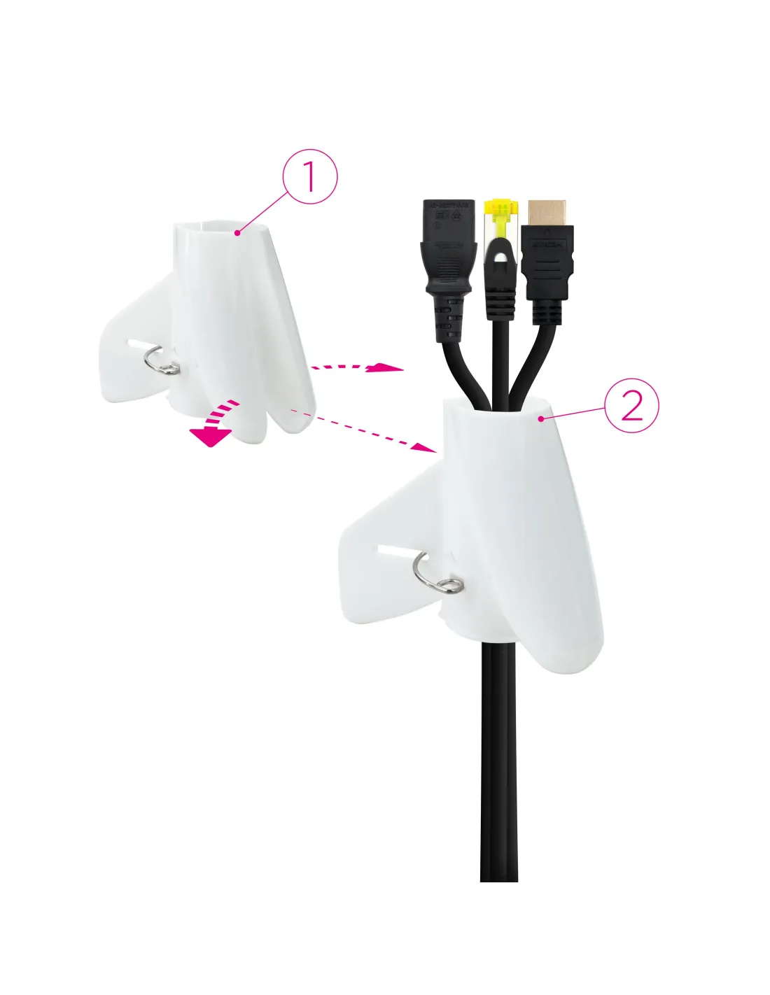 ORGANIZADOR DE CABLES¿Los cables se lían solos? Ahora puedes mantener tu espacio de trabajo y hogar totalmente ordenado y sin cables a la vista. Además, nuestro organizador está disponible en blanco y negro.Se coloca el adaptador con la flecha hacia arriba y se abre ubicando los cables en su interior.Se introduce el adaptador con los cables por un extremo del organizador.Se desliza el adaptador a lo largo de todo el organizador, dejando a su paso los cables dentro.El organizador de cables es perfecto para recoger los cables de manera práctica y sencilla en cualquier entorno. Gracias a su composición flexible y resistente de un metro de longitud y un diámetro de 25 mm otorga una fácil y rápida instalación, dejando como resultado los cables ordenados y disimulados en su interior.