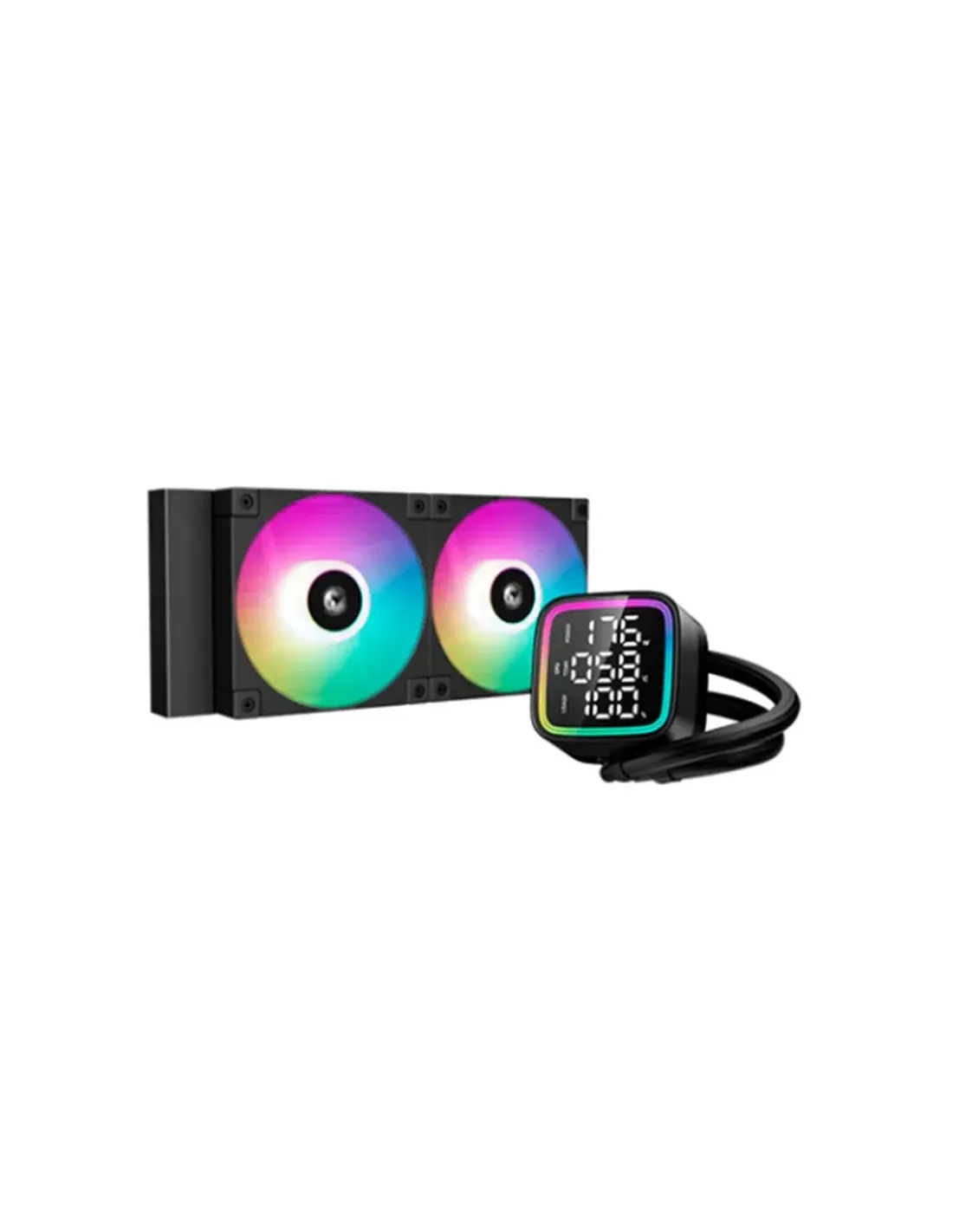 GeneralMarca: DEEPCOOLGarantía: 36Part Number: R-LD240-BKDMMN-G-1Categorías: REFRIGERACIÓNReacondicionado: NoReposición - Etiqueta: NoPeso Volumetrico 1.85 Kg.Detalles técnicosTipología Refrigeración: Refrigeración LíquidaRadiador: SiNivel de ruido: 38.71 dBConector de ventilador: 4 pines PWMConector de bomba: 3 pinesConector: USB 2.0Velocidad de motor de bomba (máx): 3400 RPMNúmero de ventiladores: 1Velocidad del ventilador (min): 600 RPMVelocidad de ventilador (max): 2400 RPMMáximo flujo de aire: 72 cfmPresión máxima de aire: 3.48 mmH2OPeso y dimensionesAltura: 27 mmAncho: 120 mmPeso: 1476 gProfundidad: 282 mmColorColor: NegroControl de energíaConsumo energético del ventilador: 2.64 WConsumo energético de la bomba: 4.2 WCorriente de bomba: 0.35 AConsumo energético: 2.3 WIluminación/AlarmasIluminación: SiIluminación de color: RGB
