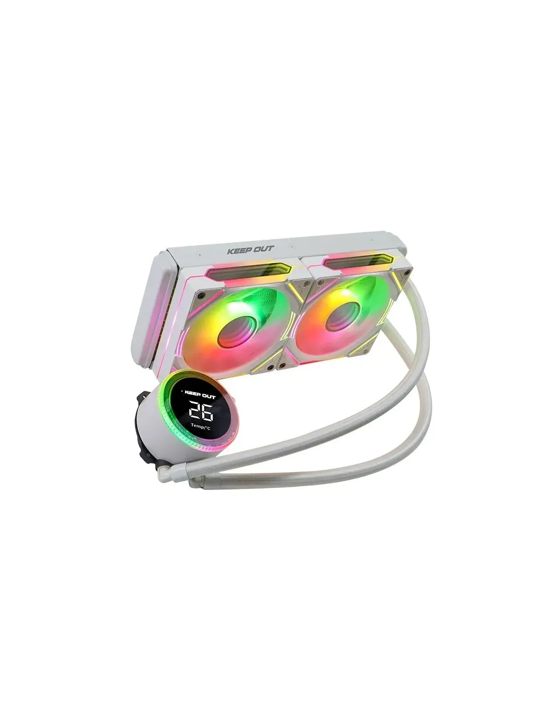Marca Keep out Modelo XWC-240W PRO Características CPU socket compatibles - Intel (LGA115X/1200/1700/1366/2011/2066) - AMD (AM5/AM4) Radiador - Dimensiones: 274x120x27mm (LxWxH) - Material del radiador: Aluminio Tubo - Longitud del tubo: 400mm Bomba - Velocidad: 2600±10% RPM - Pantalla de visualización de temperatura - Ruido: 23dB(A) - Conector: 3 pines (PWM) + 9 pines (USB) - Voltaje: 12 VDC - Corriente: 0,35A - Consumo de energía: 3,4W Ventilador - Dimensiones: 240x120x25mm (LxWxH) - Velocidad: 800-1800±10% RPM - Flujo de aire: 67,5CFM x2 - Ruido: 35dB(A) - Conector: 4 pines (PWM) + 3 pines (ARGB) - Tipo de rodamiento: Cojinete fluido - Voltaje: 12 VDC - Corriente: 0,65 A±10% máx - Consumo de energía: 7,8W±10% LED - Tipo de Led: Led ARGB - Tensión nominal del led: 5VDC - Potencia nominal del LED: 1,8W (BOMBA) / 1,44W x2 - (VENTILADORES) - Conector: 3 pines (+5V) - Efecto espejo infinito Contenido - Refrigeración líquida XWC-240W PRO - Accesorios de montaje - Silicona térmica - Guía de usuario Fecha de revisión 24-01-2025 por RTY