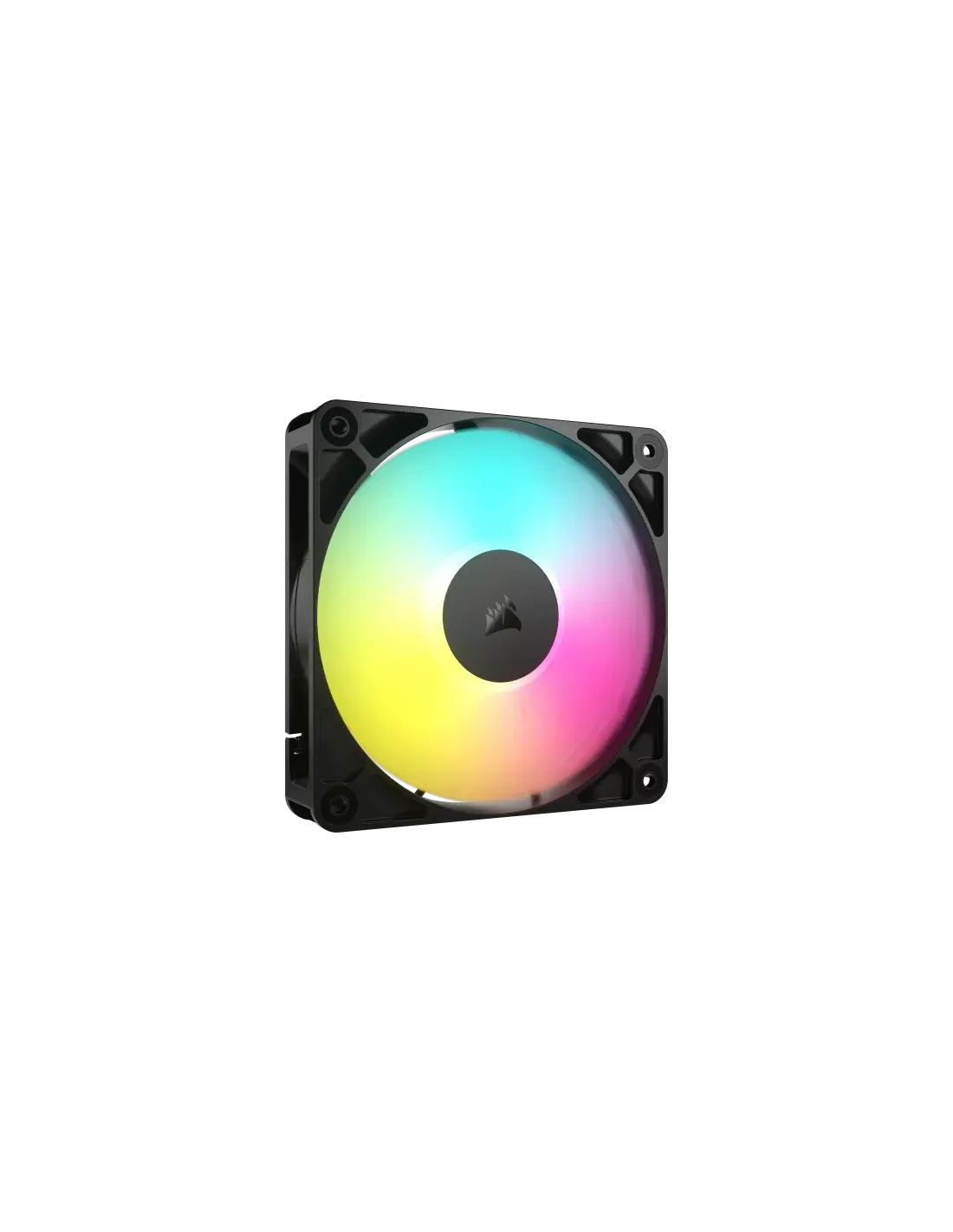 Corsair RS120 ARGB. Tipo: Ventilador, Diámetro de ventilador: 12 cm, Velocidad de rotación (mín.): 420 RPM, Velocidad de rotación (máx.): 2100 RPM, Nivel de ruido (baja velocidad): 10 dB, Nivel de ruido (alta velocidad): 36 dB, Máximo flujo de aire: 72,8 cfm, Presión de aire mínima: 0,2 mmH2O, Presión máxima de aire: 4,15 mmH2O. Color del producto: Negro