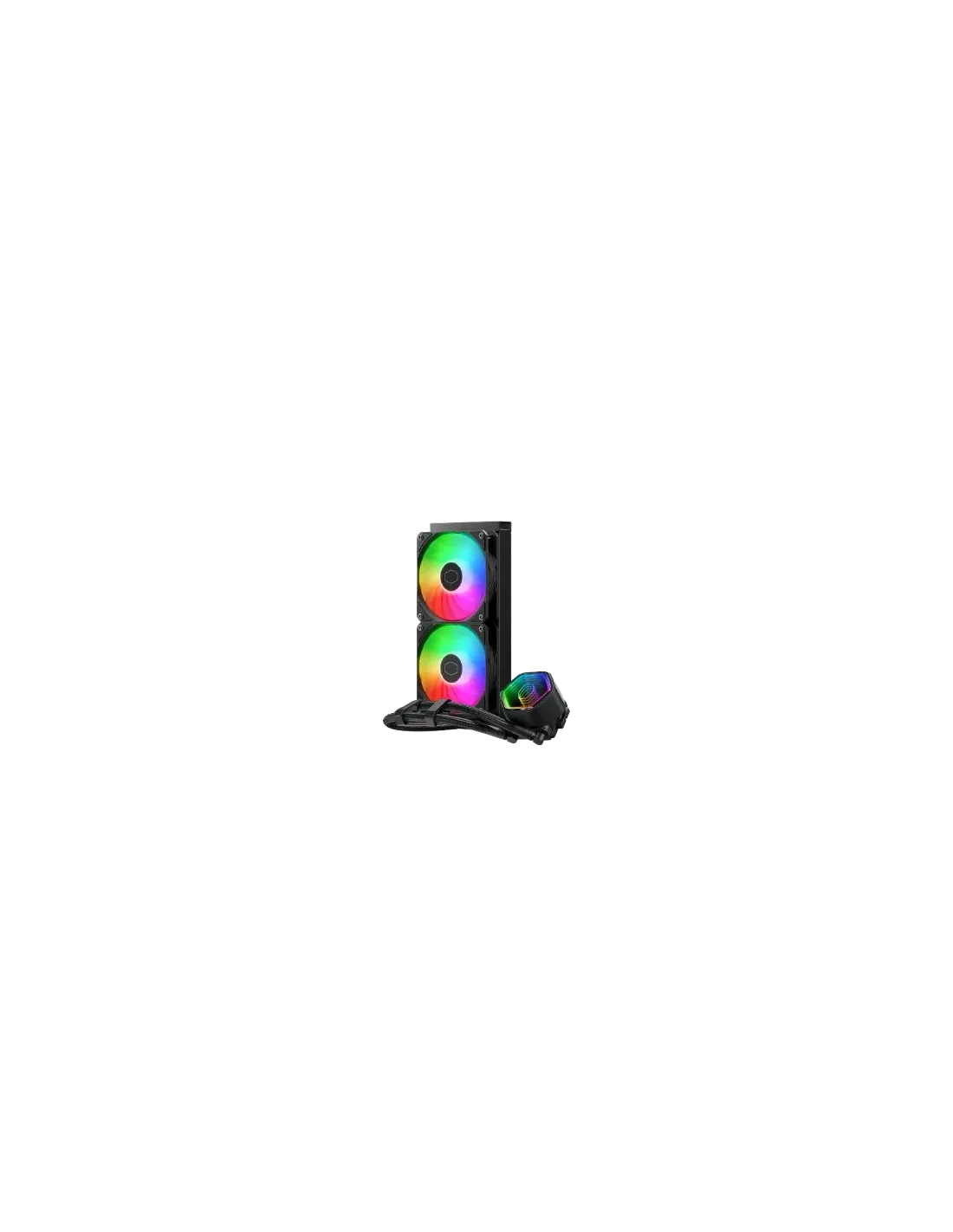 Cooler Master MasterLiquid 240 Core II. Tipo: Kit de refrigeración líquida, Diámetro de ventilador: 12 cm, Velocidad de rotación (mín.): 650 RPM, Velocidad de rotación (máx.): 1750 RPM, Nivel de ruido: 30 sonio, flujo de aire: 120 m³/h, Presión máxima de aire: 2 mmH2O, Tipo de soporte: Cojinete de casquillo. Color del producto: Negro