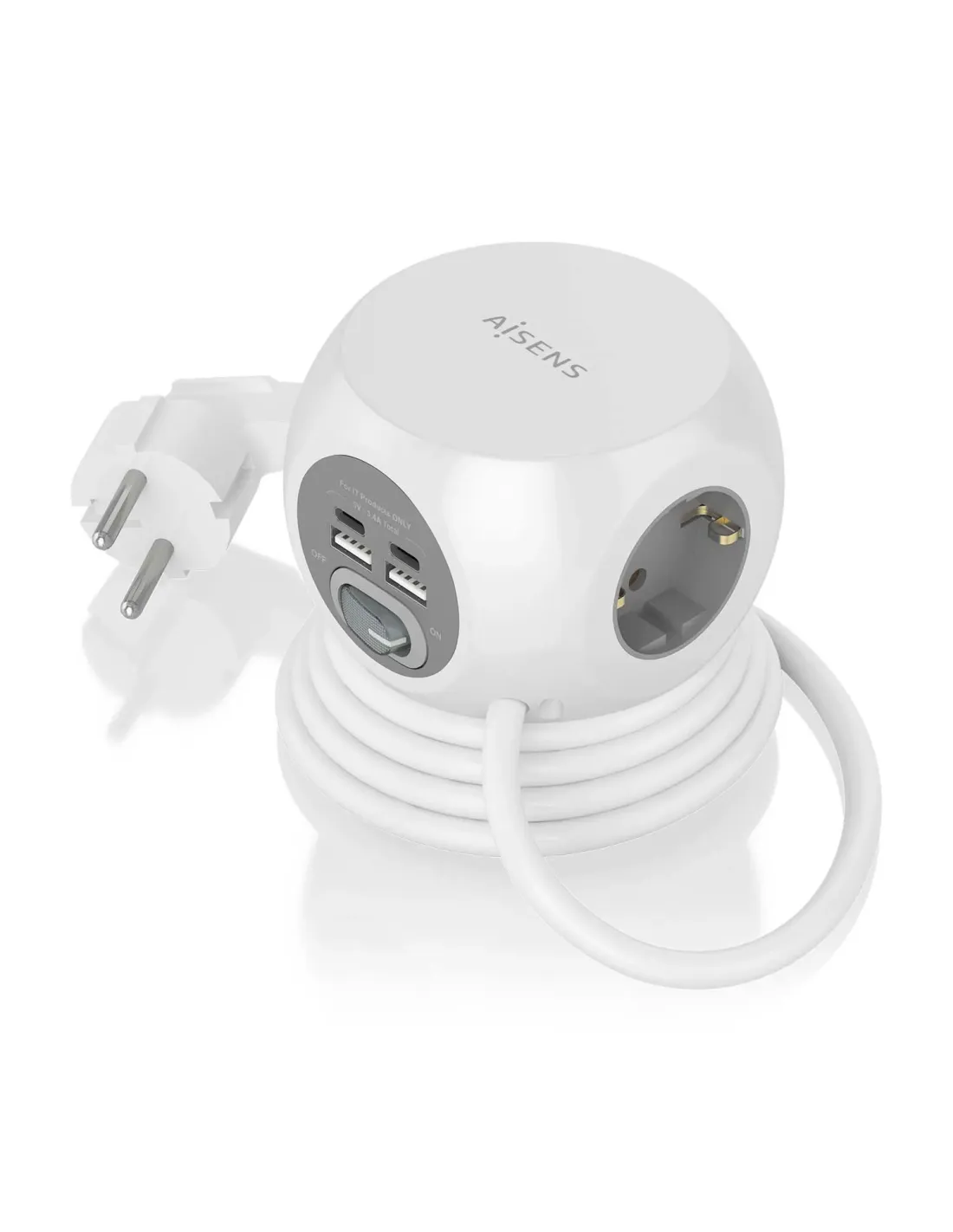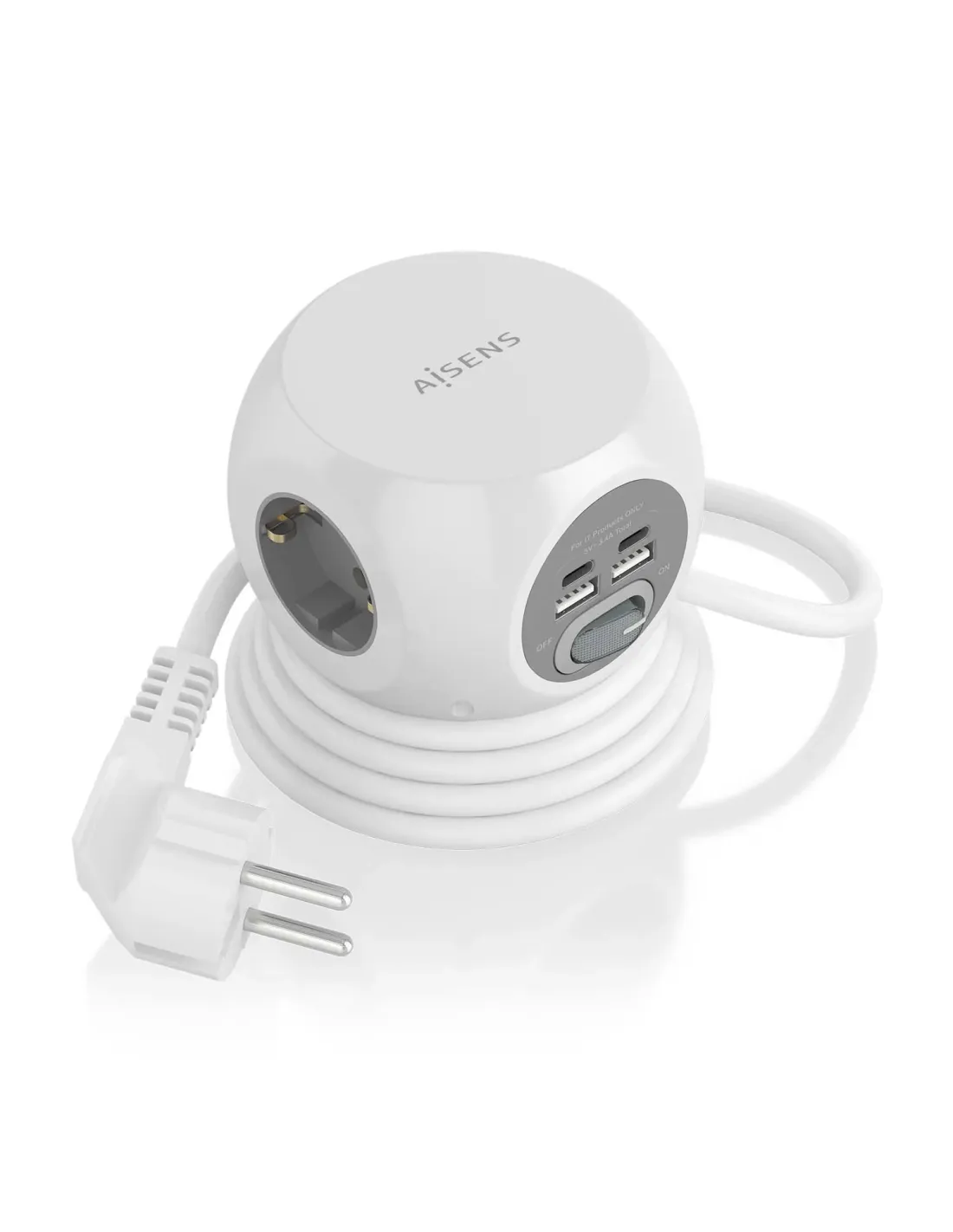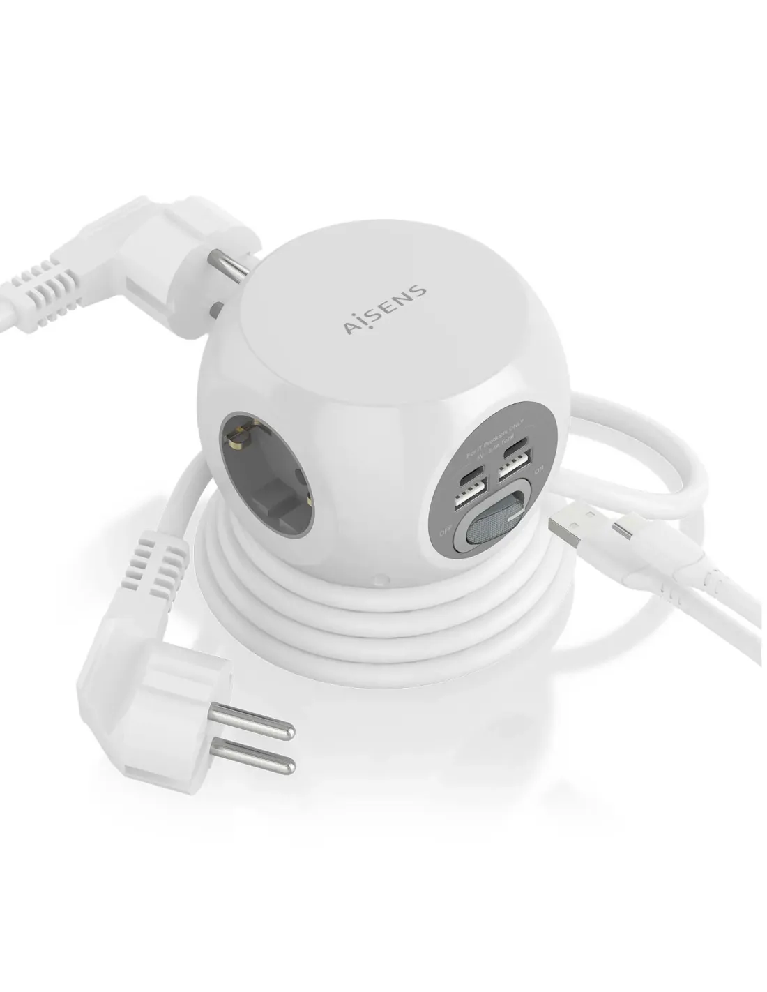 Regleta con Interruptor Aisens ASPS-2A2C04-W/ 3 Tomas de Corriente/ 2 USB Tipo-C/ 2 USB/ Cable 1.4m/ Blanco