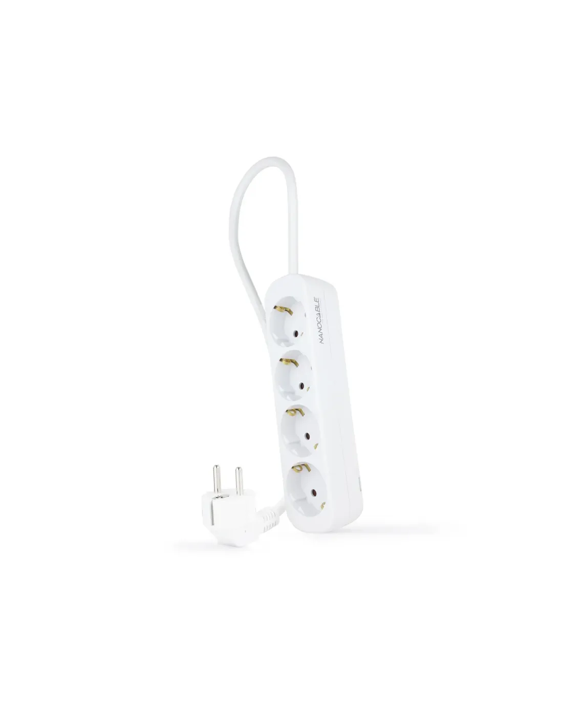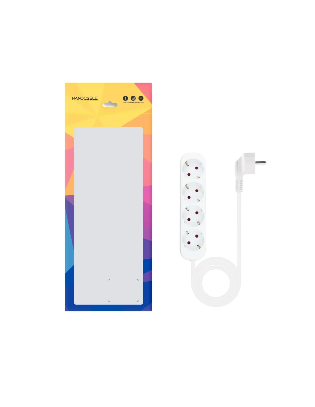 Nanocable Regleta de Enchufes con 4 Tomas, 1.4 m, Blanco, 1,4 m, Interior, Tipo F, Tipo F, Angular, Resistente a golpes