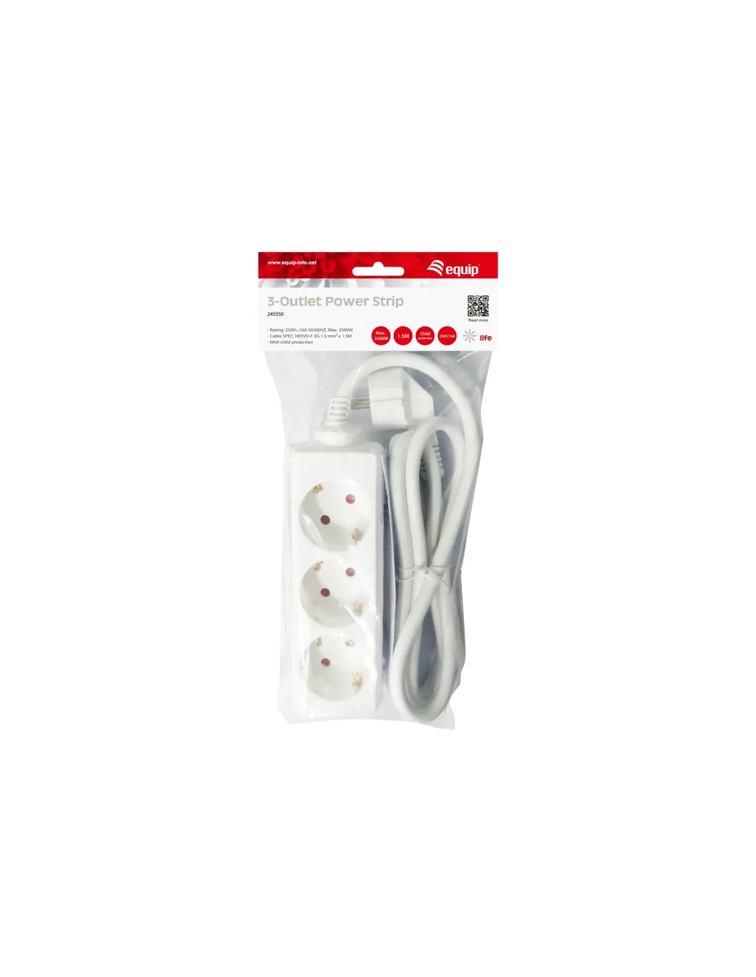 Equip 245550, 1,5 m, Interior, Tipo F, Type F (CEE 7/4), 1,5 mm², Plástico
