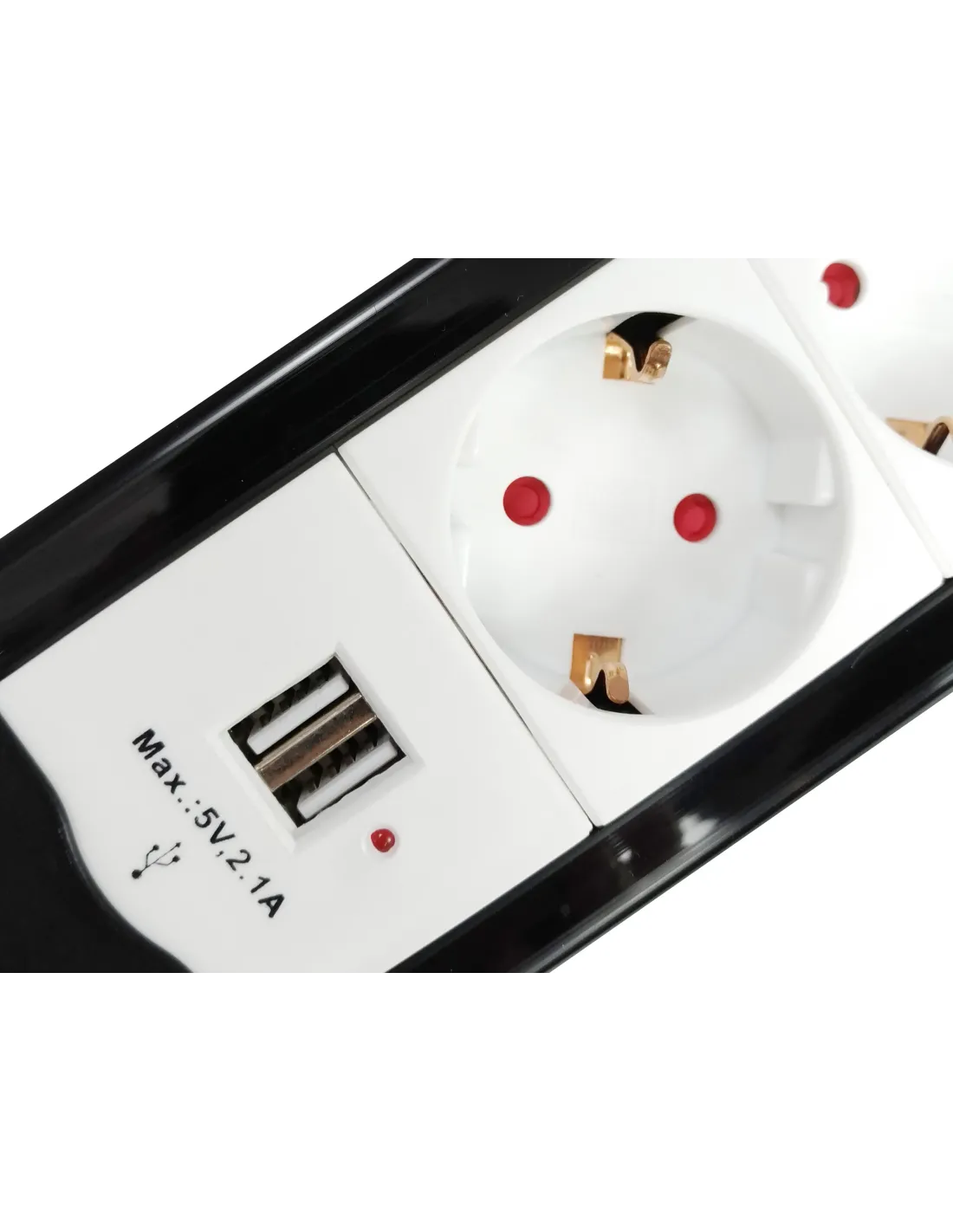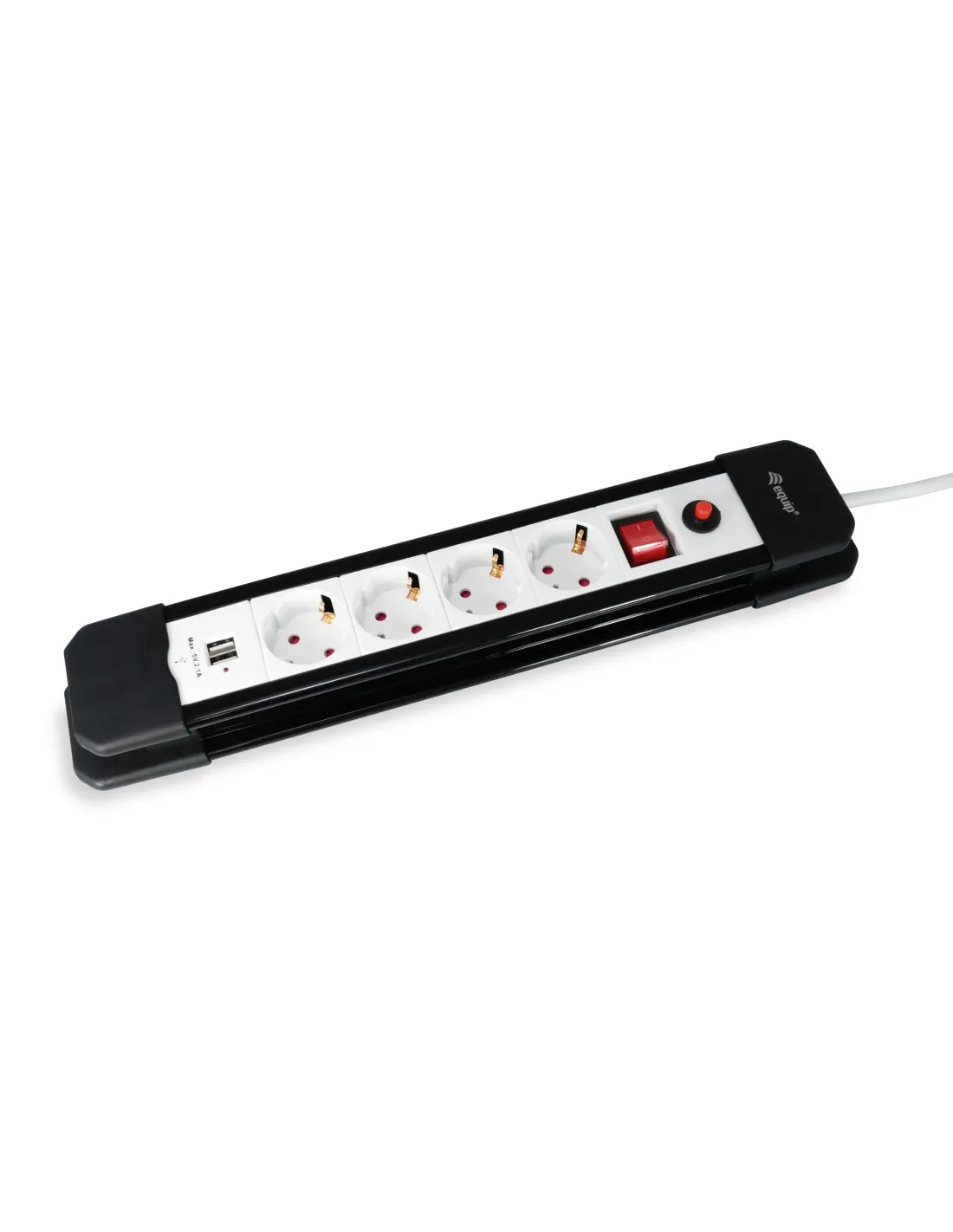 4 x SchukoClasificación: 250V, 16A 50 / 60HZ, Máx. 3500WEspecificaciones del cable: H05VV-F 3G 1.5 mm² x 1.5MCon protección infantilProtección de sobrecarga2 tomas USB con 5V / 1A cada puerto (2.1A)El equip 245553 4-Socket Power Strip viene con 4 salidas estándar y 2 salidas USB, se adapta a la mayoría de sus dispositivos con alimentación y ofrece una fuente de alimentación segura.4 x SchukoClasificación: 250V, 16A 50 / 60HZ, Máx. 3500WEspecificaciones del cable: H05VV-F 3G 1.5 mm² x 1.5MCon protección infantilProtección de sobrecarga2 tomas USB con 5V / 1A cada puerto (2.1A)
