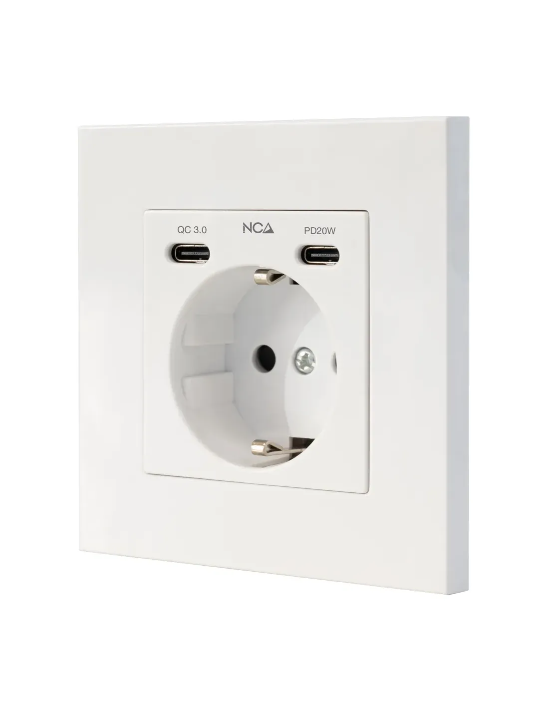 Nanocable Base de enchufe de pared tipo schuko con 2 USB-C PD - Max. 3.4A, Blanco, CEE 7/3, Blanco, 5 V, 3,4 A, 20 W, 16 A