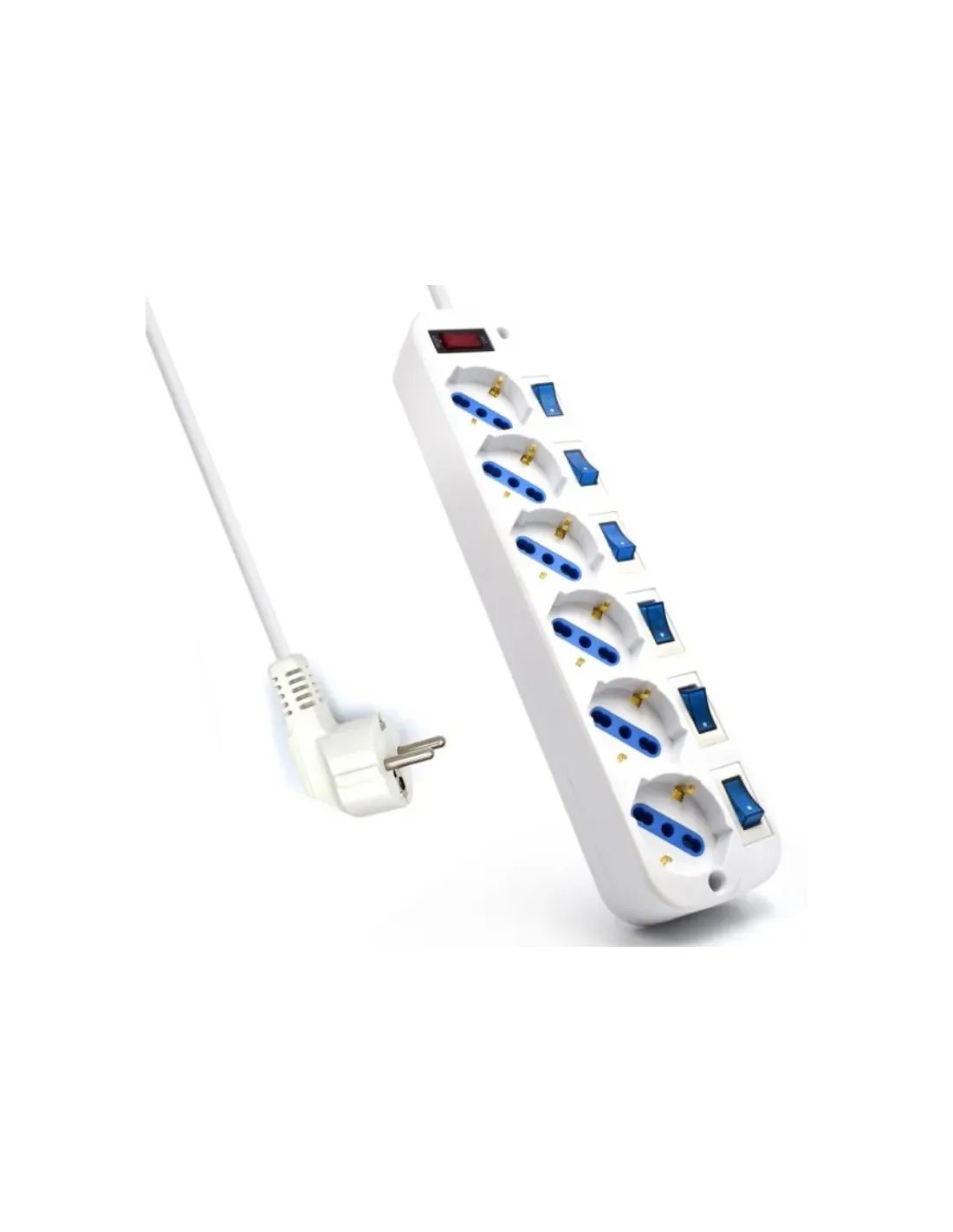 EWENT REGLETA 6 TOMAS SCHUKO CON INTERRUPTOR INDIVIDUAL. CABLE 5M. BLANCO (EW3932-5M)