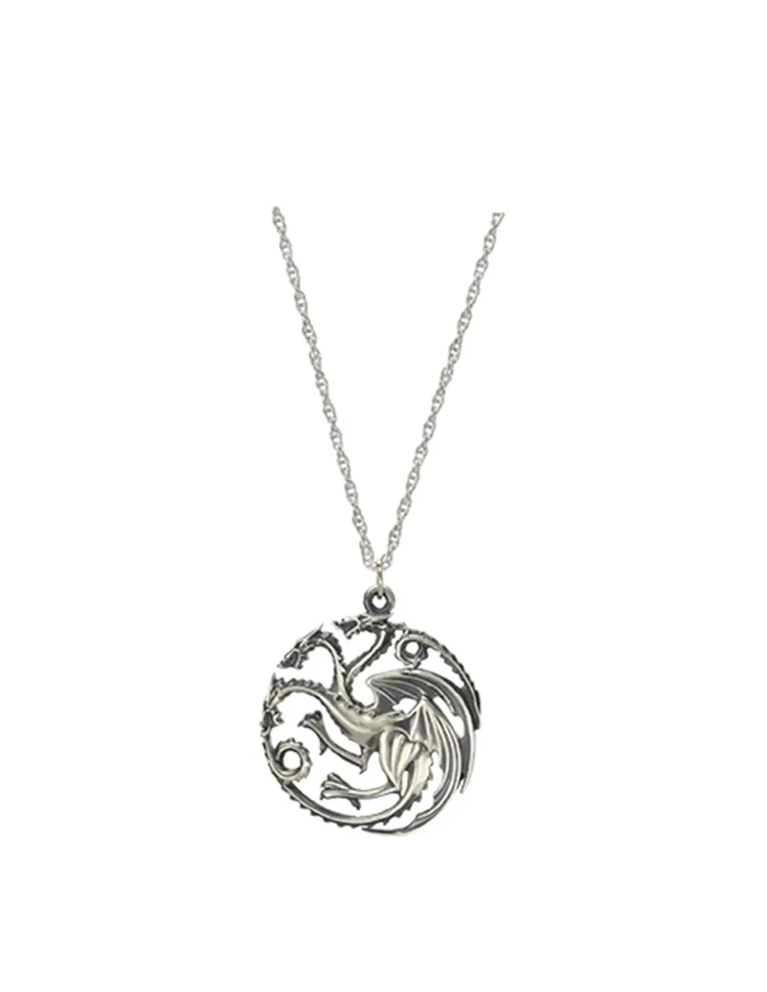 Colgante en forma de dragón tricefalo, emblema de la familia Targaryen.Esta hecho en plata 925 y mide 2,5 cm aprox.Se vende con una cadena de plata de 45 cm.