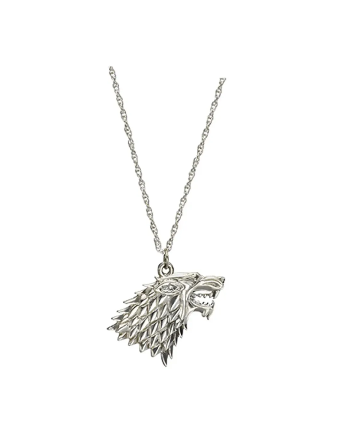 Colgante en forma de lobo, emblema de la familia StarkEsta hecho en plata 925 y mide 2,5 cm aprox.Se vende con una cadena de plata de 45 cm.