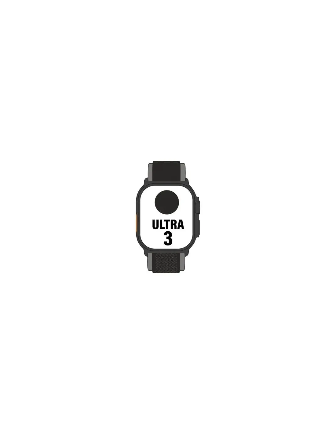 Características del Apple Watch Ultra 3El Apple Watch Ultra 3 es el reloj inteligente más avanzado de Apple, diseñado para quienes buscan resistencia, tecnología de vanguardia y un control integral de la salud y el deporte. Su caja de titanio grado 5, la pantalla Retina LTPO3 OLED de gran brillo y sus sensores de última generación lo convierten en la opción ideal para deportistas, aventureros y profesionales exigentes que necesitan un dispositivo fiable tanto en la vida diaria como en condiciones extremas.Pantalla Retina LTPO3 OLED siempre activaLa pantalla del Apple Watch Ultra 3 ofrece una visibilidad sobresaliente en cualquier entorno, incluso bajo la luz solar directa. Su cristal de zafiro garantiza resistencia frente a arañazos y su brillo de hasta 3000 nits proporciona una claridad superior.Pantalla Retina LTPO3 OLED en colorResolución de 422 x 514 píxelesDensidad de 326 ppiCristal de zafiro con protección extraAlways On Display (AOD)Rendimiento y conectividad de última generaciónEquipado con el chip Apple S10 y un motor neural de 4 núcleos, el Ultra 3 garantiza un rendimiento fluido en todas las aplicaciones. Además, incorpora conectividad avanzada para mantenerte siempre conectado.LTE, Wi-Fi (IEEE 802.11n), Bluetooth 5.3, NFC y Ultra-WidebandCompatible con eSIM y tecnología 5GBotón de acción personalizable y gestos de doble toqueSalud y bienestar siempre bajo controlEl Ultra 3 integra sensores de precisión para monitorizar tu estado de salud y ofrecerte información detallada sobre tu actividad diaria y descanso.Medición de saturación de oxígeno, ECG y ritmo cardíacoDetección de fases del sueño, ciclo menstrual y temperatura corporalControl de nivel de ruido ambiental y mindfulnessPreparado para la aventuraDiseñado para actividades extremas, este reloj soporta condiciones que pocos dispositivos alcanzan. Su resistencia al agua de hasta 100 m, certificaciones militares y materiales premium lo convierten en el aliado perfecto para deportes acuáticos, de montaña o de alta intensidad.Profundidad máxima de resistencia: 100 mAltitud de funcionamiento hasta 9000 mCertificaciones: IEC 60529 IP6X, MIL-STD-810H, ISO 22810:2010Compatible con deportes como buceo, snorkel, esquí, ciclismo, yoga, golf, HIIT, entre muchos otrosBatería de larga duraciónLa autonomía del Apple Watch Ultra 3 se adapta a tus necesidades, con modos de ahorro para prolongar su uso en expediciones o entrenamientos intensos.Hasta 42 horas en uso normalHasta 72 horas en modo de bajo consumoHasta 35 horas con GPS y LTE en modo de bajo consumoCarga rápida inalámbrica con cable magnético USB-CDiseño premium y comodidadSu caja de titanio negro de 49 mm combina resistencia y ligereza, mientras que la correa Loop Trail de nailon asegura un ajuste firme y cómodo para actividades diarias y deportivas.Peso de solo 61,8 g (caja)Caja rectangular de titanio grado 5Parte trasera en cristal de zafiro y cerámicaCorrea intercambiable de nailon con cierre de velcroFunciones inteligentesEl Ultra 3 no solo es un reloj deportivo, también un asistente personal. Con Siri integrado y notificación de aplicaciones, correos, SMS y llamadas, estarás siempre conectado sin depender del iPhone.Gestor de llamadas y reproducción de músicaApple Pay y aplicaciones nativas como Oceanic+ y Depth AppDetección de caídas, golpes y SOS de emergenciaNavegación GPS multibanda con WaypointsOtras especificacionesCapacidad de almacenamiento: 64 GBSistema operativo: WatchOSCompatibilidad: iOS 26 o posteriorGarantía: 1 añoRango de temperatura de funcionamiento: -20 °C a 55 °CHumedad: 5 - 90% sin condensaciónAccesorios incluidos: cargador magnético rápido USB-C (1 m)