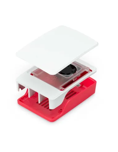 Carcasa raspberry pi 5 con ventilador roja y blanca
