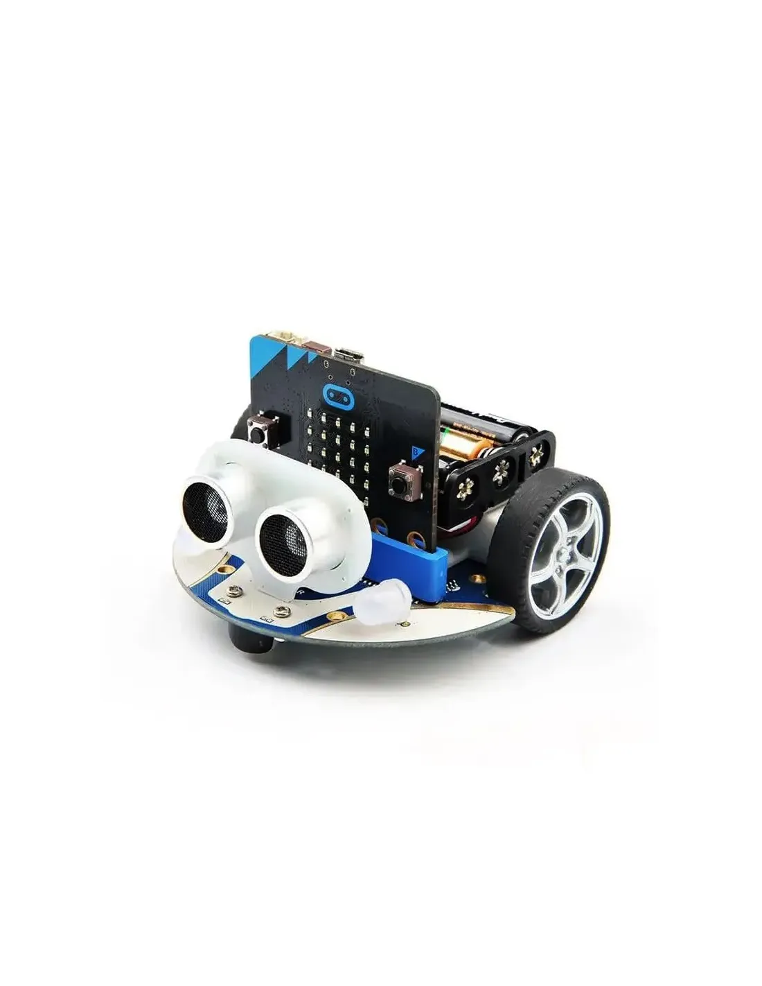 Cutebot es un cochecito inteligente impulsado por dos motores de alta velocidad. Un kit muy económico y ampliable para motorizar tu micro:bit.Cutebot + micro:bit es una combinación perfecta para escuelas, con unas posibilidades formativas tremendas y un precio sin competencia. ¡Mira los vídeos y verás todo lo que puedes hacer!.También tienes la opción de Cutebot Plus*No incluye la tarjeta micro:bitEdad: 8+¡Un montón de posibilidades!Contiene:Sensor de UltrasonidosSigue-líneasSensor de IR para usar con mando a distancia (no incluido)Zumbador2 x LEDs RGB2 x LED Neopixel (debajo del chasis)2 x Motores de 300 RPMGuía de uso (inglés)Alimentación: 3 x Pilas AAA (no incluidas)Cutebot te permitirá llevar a cabo un montón de juegos de aprendizaje:Seguir a otro Cutebot a distancia fijaEvitar obstáculosSeguir líneasCompeticiones de fútbolManejar LEDsSeguimiento de luzReproductor musicalControl remoto por IR, con el giróscopo de la micro:bit o con Joystick:bitCompetición de carrerasLucha (ampliación con piezas LEGO)Lleva motores robustos con engranajes metálicos, rueda metálica universal y es ampliable con más sensores y actuadores.Múltiples puertos de conexión para 4 simpáticos ejerciciosEn la parte trasera del CuteBot dispones de 4 puertos donde poder conectar otros sensores y actuadores que, junto al puerto i2C de la parte delantera, permite una amplia variedad de conexionesexternas.Aquí tienes unos pocos ejemplos, robot de limpieza, anti-robo, meteorólogo y party:bot.