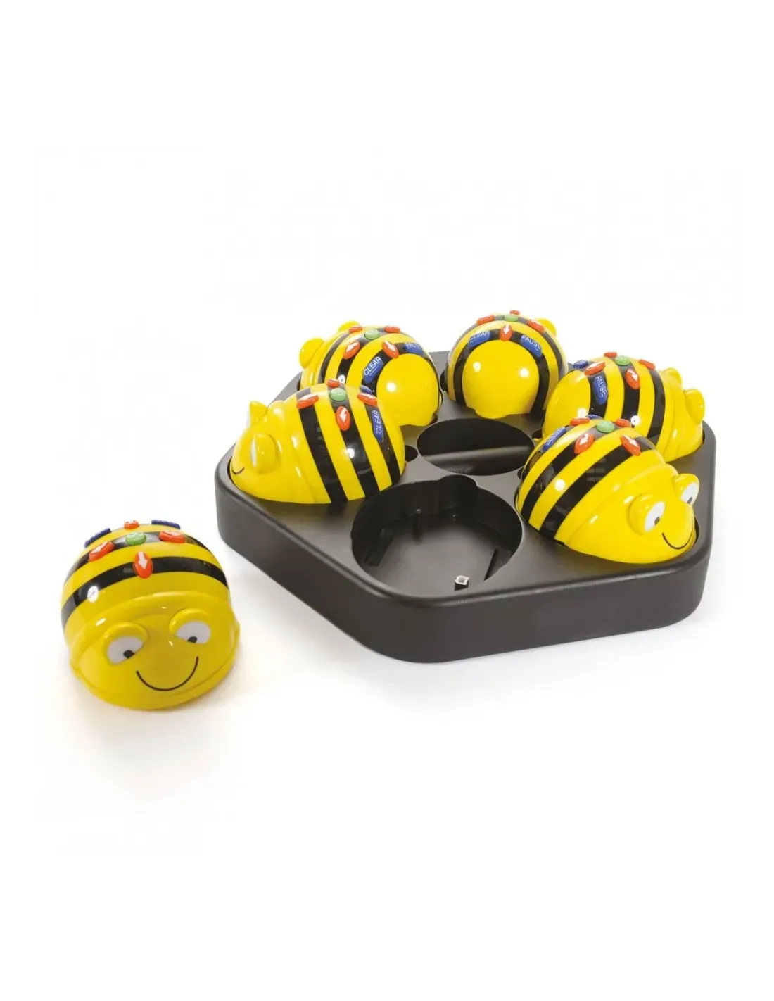 Bee-Bot es un punto de partida perfecto para enseñar control, lenguajedireccional y programación. Este producto se compone de 6 Bee-Botmás una estación de carga. Junto con una memoria de 200 pasos,Bee-Bot ahora puede detectar otro Bee-Bot o Blue-Bot y saludar.Tambien puede reproducir un sonido predeterminado o los estudiantespueden grabar el suyo. Los estudiantes también pueden grabar un audiopara reproducirlo cuando se presiona cada botón, lo que lo hace másaccesible para todos los estudiantes, incluidos aquellos con necesidadesde procesamiento auditivo o visual.Bee-Bot se mueve en pasos de 15 cm y gira en 90. Suministrado con uncable USB, Bee-Bot puede recargarse a traves de su computadora, unenchufe de pared con un adaptador de red USB (no suministrado) omediante la estación de carga.La aplicación Bee-Bot ya esta disponible. Haz uso de la funcionalidad delteclado Bee-Bot y permite a los niños mejorar sus habilidades en lenguajedireccional y programación usando dicha aplicación.¡Con el Paquete para aula Bee-Bot toda la clase podrá disfrutar de la programación!Para niñ@s a partir de 3 añosEste pack incluye 6 Bee-Bot y la estación de carga, facilitando así la incorporación de la robótica en el aula.Contiene:6 Bee-Bot1 estación de carga