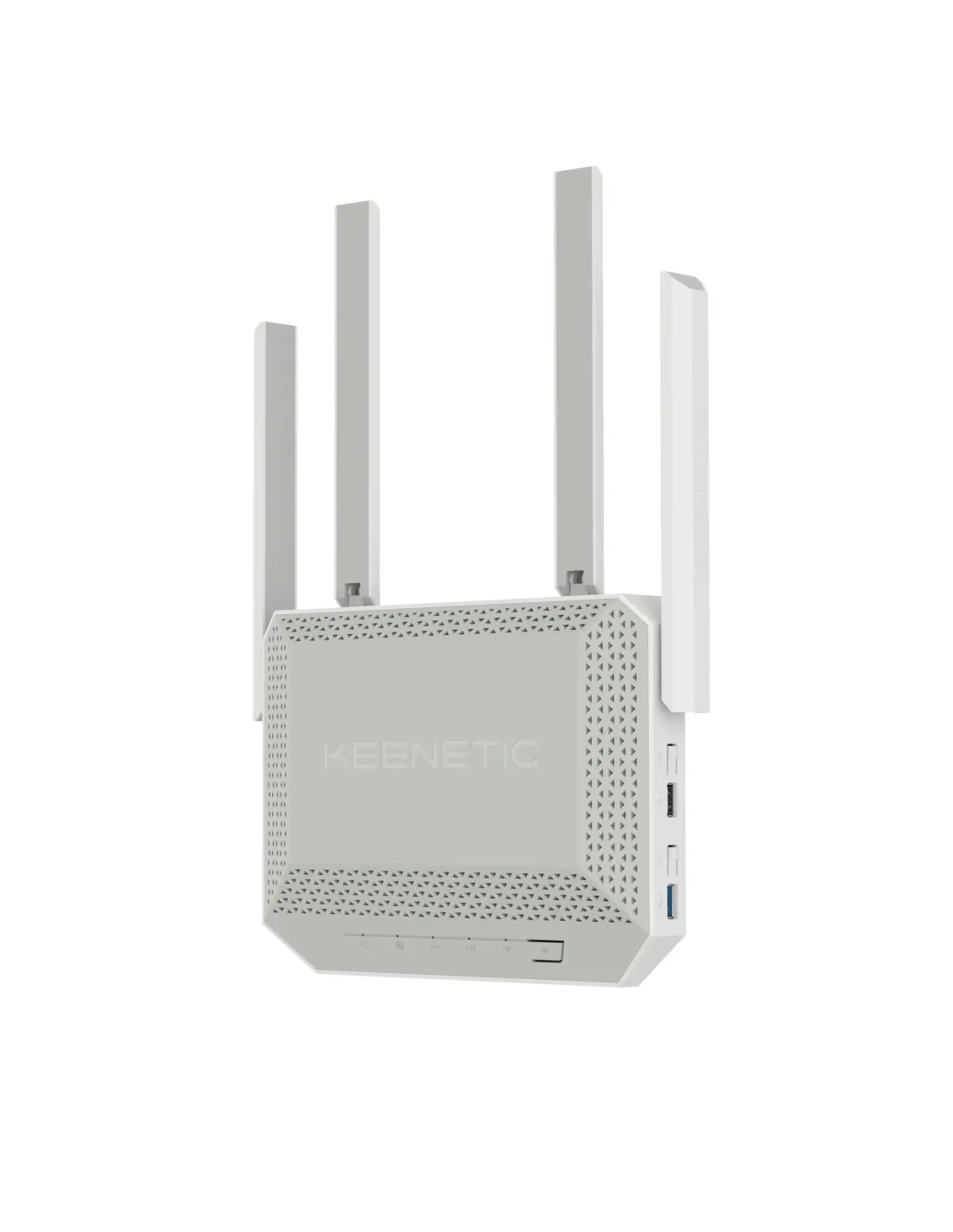 Keenetic Titan Enrutador multigigabit Wifi 7 en malla BE7200 con un Smart Switch 1x10G, 1x2,5G y 4x1G, puertos USB 3.2 y USB 2.0 multifunción. Tipo de conexión WAN: RJ-45. Banda Wi-Fi: Doble banda (2,4 GHz / 5 GHz), Estándar Wi-Fi: Wi-Fi 7 (802.11be), Tasa de transferencia de datos WLAN (máx.): 7200 Mbit/s. Tipo de interfaz Ethernet LAN: 10 Gigabit Ethernet, Ethernet LAN, velocidad de transferencia de datos: 10,100,1000,2500,10000 Mbit/s, Estándares de red: IEEE 802.11a, IEEE 802.11ac, IEEE 802.11ax, IEEE 802.11b, IEEE 802.11be, IEEE 802.11g, IEEE 802.11n. Número de flujos de datos: 4x4. Algoritmos de seguridad soportados: OWE, WEP, WPA-PSK, WPA2-Enterprise, WPA2-PSK, WPA3-Enterprise, WPA3-PSK