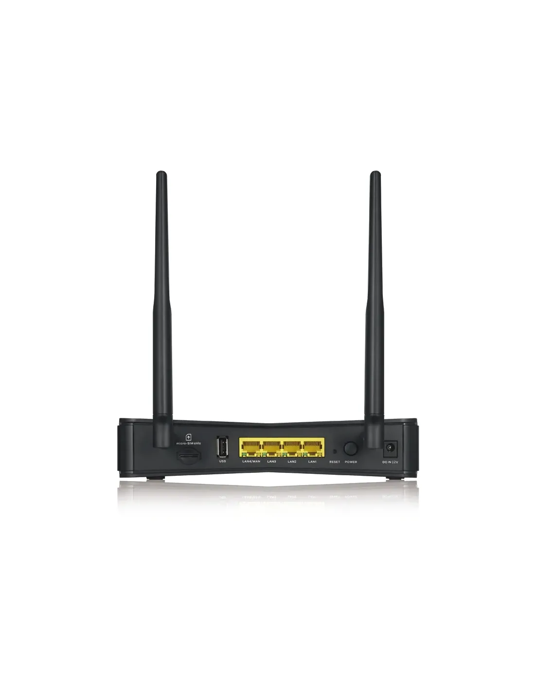 Zyxel LTE3301-PLUS. Tipo de conexión WAN: RJ-45. Banda Wi-Fi: Doble banda (2,4 GHz / 5 GHz), Estándar Wi-Fi: Wi-Fi 5 (802.11ac), Wi-Fi estándares: 802.11a, 802.11b, 802.11g, Wi-Fi 4 (802.11n), Wi-Fi 5 (802.11ac). Tipo de interfaz Ethernet LAN: Gigabit Ethernet, Ethernet LAN, velocidad de transferencia de datos: 1000 Mbit/s, Estándares de red: IEEE 802.11a, IEEE 802.11ac, IEEE 802.11b, IEEE 802.11g, IEEE 802.11n. Generación de red móvil: 4G, Estándares 3G: HSPA+, HSUPA, WCDMA, Estándar 4G: LTE-A. Tipo de producto: Router de sobremesa, Color del producto: Negro