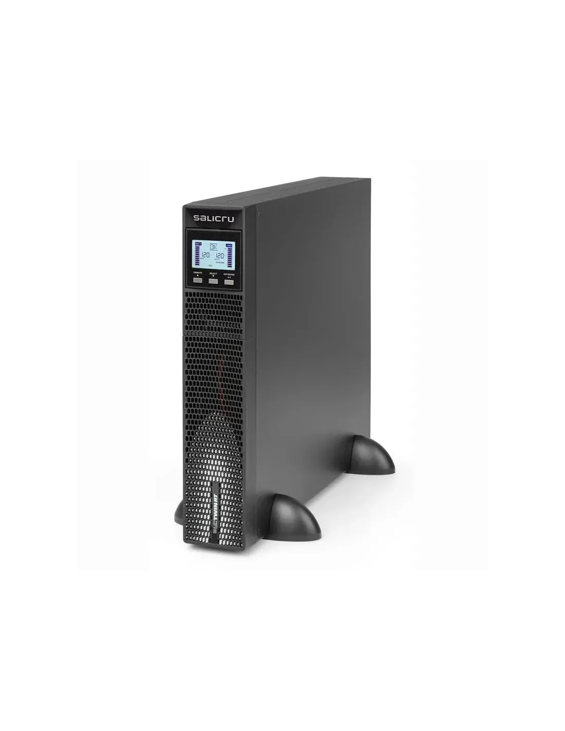 Salicru SLC-1000-TWIN RT2 A. Topología UPS: Doble conversión (en línea), Capacidad de potencia de salida (VA): 1000 kVA, Potencia de salida: 1000 W. Cantidad de salidas AC: 8 salidas AC, Tipo de serie de interfaz: RS-232. Tecnología de batería: Plomo-Calcio (Pb-Ca), Tiempo de recarga de la batería: 4 h. Factor de forma: Montaje en rack/Torre o Montaje en bastidor/Torre, Color del producto: Negro, Tipo de visualizador: LCD. Ancho: 438 mm, Profundidad: 410 mm, Altura: 88 mm
