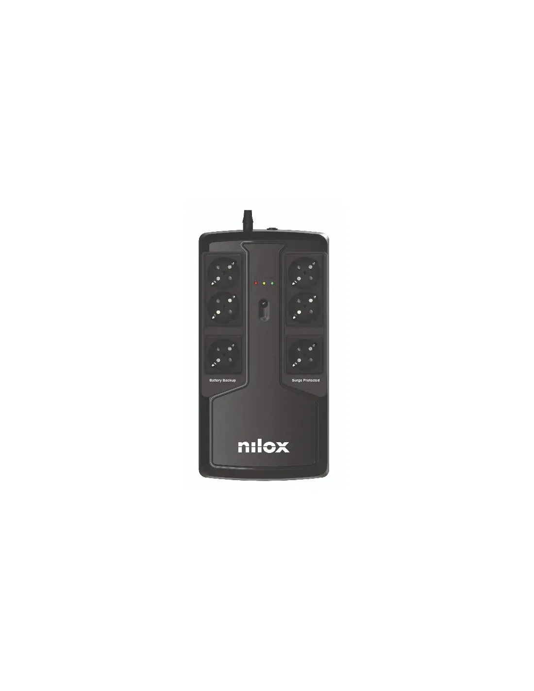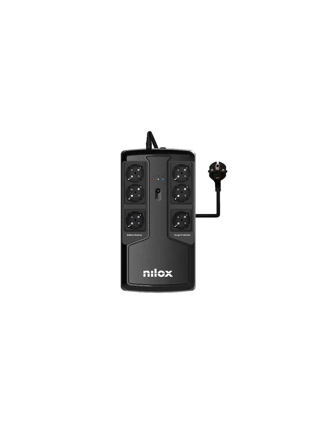 Nilox UPS OFFICE PREMIUM LINE INTERACTIVE 850 VA. Topología UPS: Línea interactiva, Capacidad de potencia de salida (VA): 0,85 kVA, Potencia de salida: 595 W. Capacidad de la batería: 5 Ah, Voltaje de la pila: 12 V, Tiempo típico de respaldo a carga completa: 5 min. Factor de forma: Mini Tower, Color del producto: Negro. Certificación: CE. Ancho: 95 mm, Profundidad: 305 mm, Altura: 160 mm