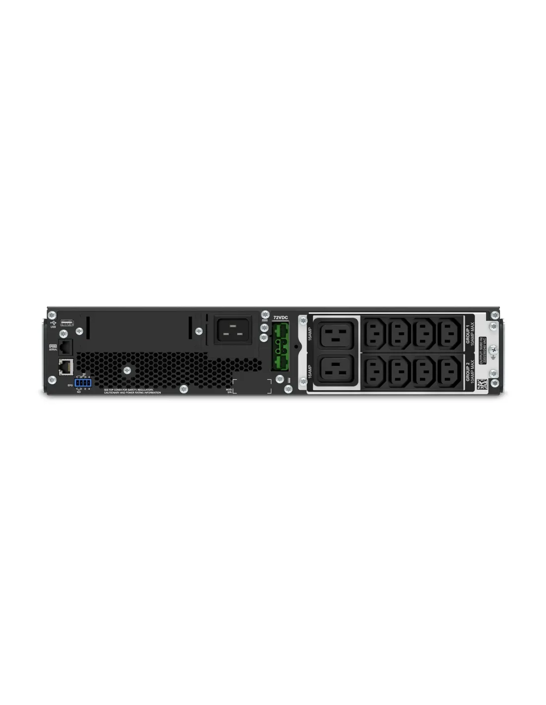 APC Smart-UPS. Topología UPS: Doble conversión (en línea), Capacidad de potencia de salida (VA): 2,2 kVA, Potencia de salida: 1980 W. Tipo de salida AC: C13 acoplador, C19 acoplador, Conector: C20 acoplador, Cantidad de salidas AC: 10 salidas AC. Tecnología de batería: Sealed Lead Acid (VRLA), Capacidad de la batería: 367 VAh, Tiempo típico de respaldo a carga completa: 3,9 min. Factor de forma: Montaje en rack/Torre o Montaje en bastidor/Torre, Color del producto: Negro, Capacidad del rack: 2U. Certificados de conformidad: RoHS, Certificación: CE, CE Mark, EAC, EN/IEC 62040-1, EN/IEC 62040-2, RCM, VDE, REACH