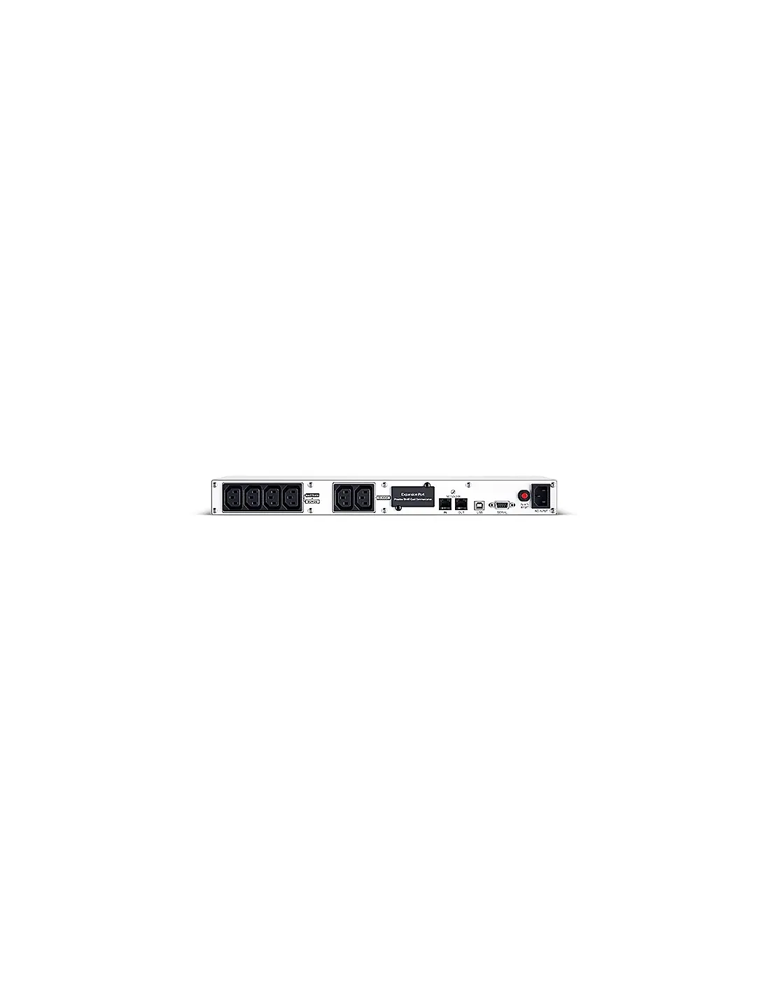 CyberPower OR600ERM1U. Topología UPS: Línea interactiva, Capacidad de potencia de salida (VA): 0,6 kVA, Potencia de salida: 360 W. Tipo de salida AC: C13 acoplador, Conector: C14 acoplador, Cantidad de salidas AC: 6 salidas AC. Tecnología de batería: Sealed Lead Acid (VRLA), Tiempo típico de respaldo a carga completa: 4 min, Tiempo típico de respaldo a media carga: 13 min. Factor de forma: Montaje en rack o Montaje en bastidor, Color del producto: Plata, Material de la carcasa: Metal. Certificados de conformidad: RoHS, Certificación: CE, EAC, RCM