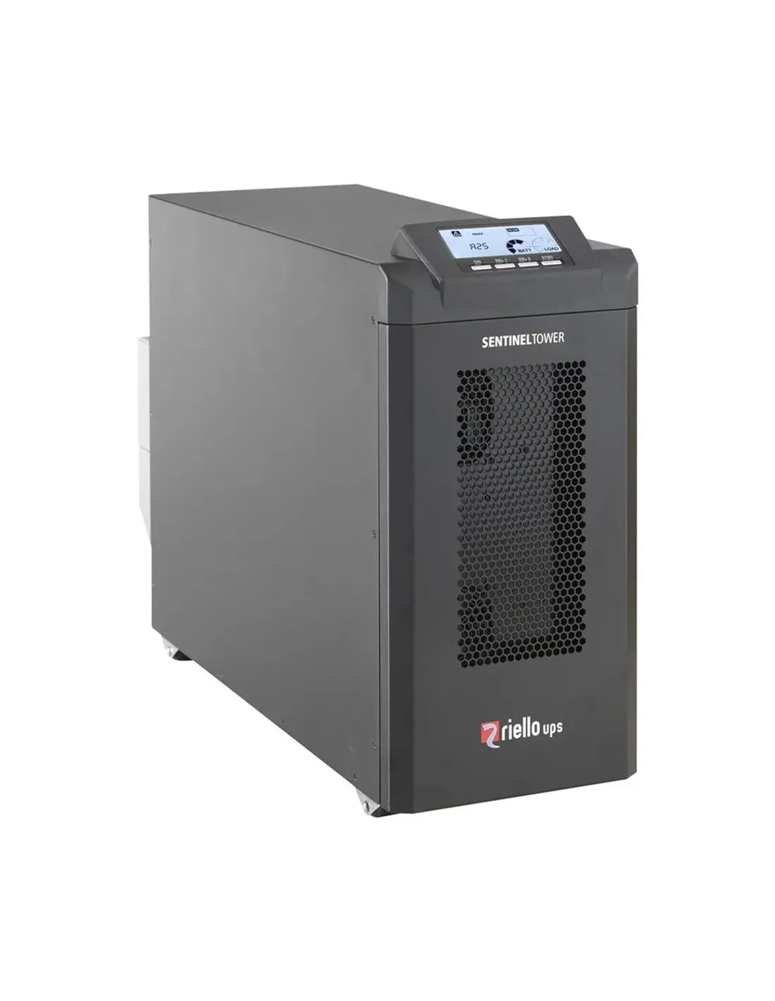 Características del Riello UPS Sentinel Tower STW 10000El **Riello Sentinel Tower STW 10000** es un sistema de alimentación ininterrumpida (UPS) trifásico de alto rendimiento, ideal para **infraestructuras críticas, servidores, sistemas de telecomunicaciones o aplicaciones industriales** que requieren máxima protección y continuidad eléctrica. Diseñado en formato torre y equipado con tecnología **online de doble conversión**, este modelo ofrece una protección total frente a cortes, variaciones de tensión y perturbaciones eléctricas, garantizando un suministro estable y eficiente.Protección avanzada y eficiencia en todo momentoEste SAI cuenta con una arquitectura tecnológica que asegura una **onda senoidal pura**, ideal para equipos sensibles. Gracias a su factor de potencia de 0.98 y su eficiencia del 95%, combina fiabilidad y consumo optimizado. Además, ofrece **múltiples protecciones integradas** para evitar sobrecargas, sobrecalentamientos, subvoltajes o cortocircuitos.Potencia: 10000 VA / 10000 WTecnología UPS: En línea (doble conversión)Forma de onda de salida: Onda senoidal puraEficiencia operativa: Hasta un 95%Protecciones: Sobrecarga, subvoltaje, sobrecalentamiento y cortocircuitoConectividad y gestión remotaEl Sentinel Tower STW 10000 permite una **gestión eficaz y remota** gracias a sus interfaces RS-232 y USB integradas. Está preparado para adaptarse a entornos exigentes con una ranura de expansión libre para módulos adicionales y monitorización. El panel frontal LCD facilita la supervisión local del estado del sistema.1 x puerto RS-232 (DB-9)1 x puerto USB Tipo BDisplay LCD frontal para información en tiempo real1 ranura de expansión libreBatería de plomo sin mantenimientoIncorpora baterías de ácido de plomo selladas y sin mantenimiento, diseñadas para un rendimiento estable y una larga vida útil en condiciones exigentes. Su operación es silenciosa, con niveles de ruido de tan solo 48 dBA, lo que lo hace apto para entornos profesionales y salas técnicas.Tecnología: Ácido de plomo selladoSin necesidad de mantenimientoEmisión de sonido: 48 dBADiseño robusto y preparado para entornos exigentesSu estructura externa en color negro (RAL 9005) y formato torre permite una **instalación versátil** en espacios reducidos. Soporta un amplio rango de temperatura y humedad, manteniendo su funcionamiento estable incluso en condiciones no ideales.Dimensiones: 25 cm (ancho) x 50 cm (alto) x 69.8 cm (profundidad)Peso: 84 kgRango de temperatura operativa: 0 °C a 40 °CHumedad: 0% - 95% sin condensaciónOtras especificacionesVoltaje de entrada: CA 220/230/240/380/400/415 VCableado de entrada: Trifásico / 1 faseFrecuencia de entrada y salida: 50/60 HzConectores de salida: 1 x bloque de terminales, 2 x IEC 60320 C13Normativas: EN 62040-1:2008, EN 62040-2, Directiva 2014/35/EU y 2014/30/EUCable USB incluido